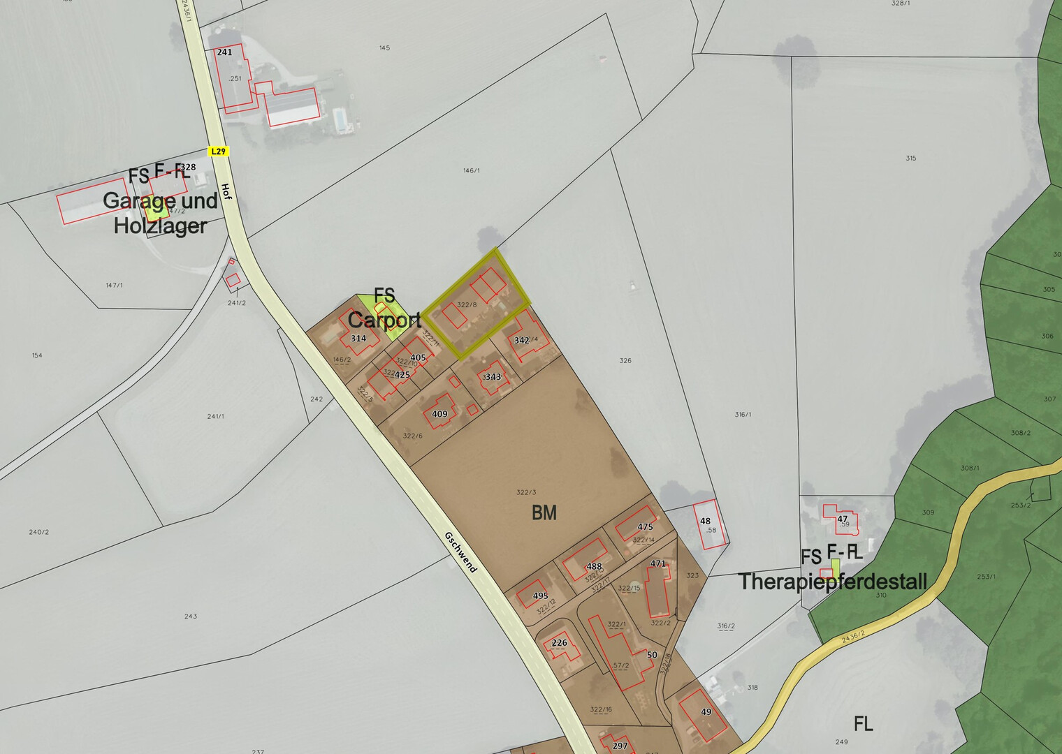 Ein überdachter Carportplatz rundet dieses attraktive Angebot ab. Für Besucher stehen auch die Parkplätze an der Landstraße zur Verfügung.