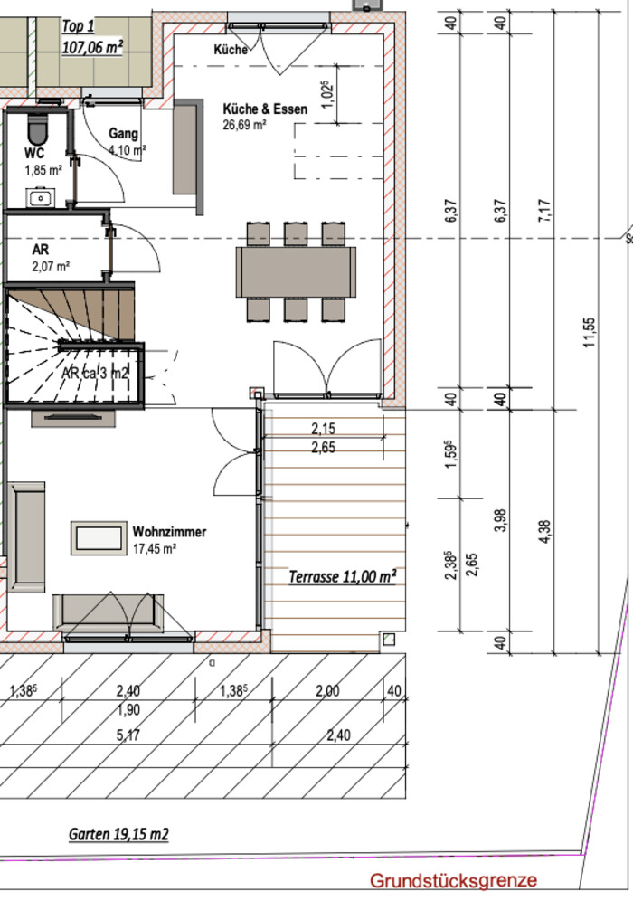 Modernes Wohnhaus mit nur 6 Einheiten, 1 Eck-Reihenhaus mit Garten nach Süden ausgerichtet,