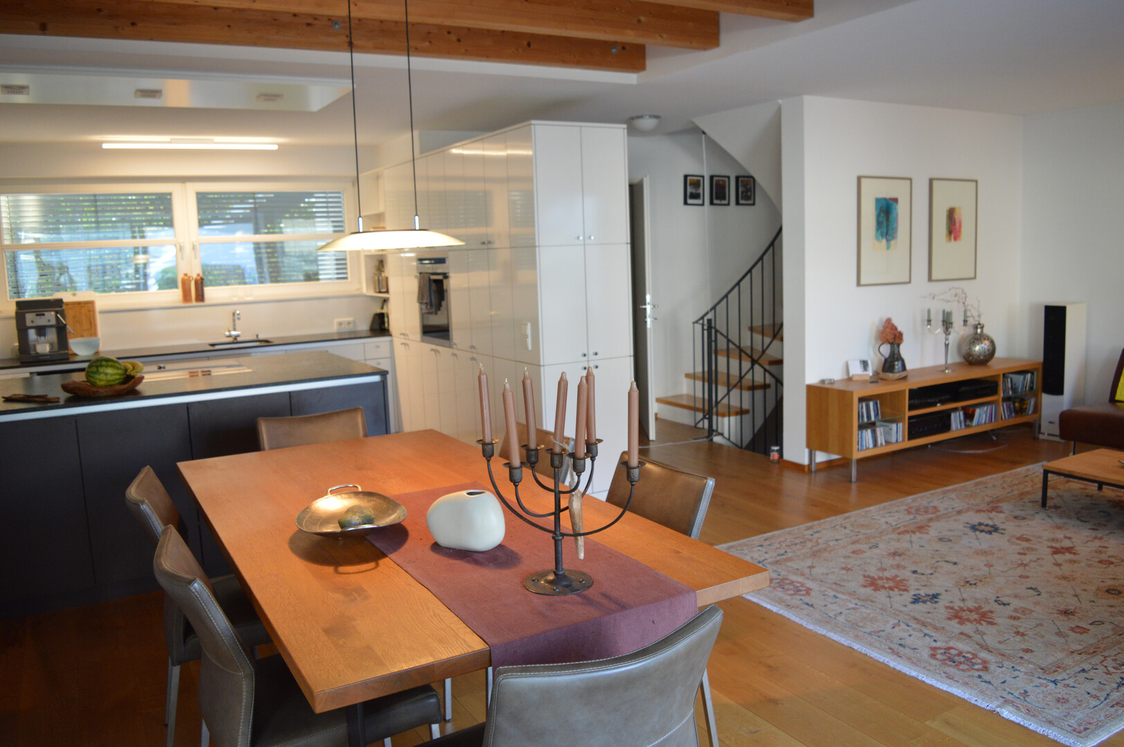 Das süd-westseitig ausgerichtete Reihenhaus (Top 1) mit ca. 141 m² verfügt über fünf Zimmer. Diese verteilen sich auf Küche, Ess- und Wohnzimmer, 3 Schlafzimmer, ein weiteres Wohnzimmer sowie einen Abstellraum, ein Gäste-WC, und 2 Badezimmer. Das absolute Highlight ist die große Terrasse samt Garten. Im Wohn-, Ess- und Kochbereich ist eine hochwertiger Eichenparkett verlegt. Die Schlafzimmer wurden mit einem schönen Parkett versehen. Die Fenster sind aus Holz und 2-Fach verglast und werden über mechanische Raffstoren beschattet. Die geräumige Küche kommt aus Tischlerhand und wurde mit NEFF-Geräten ausgestattet. Weiters verfügt das Haus über ein Kellergeschoss mit direktem Zugang in die Tiefgarage.