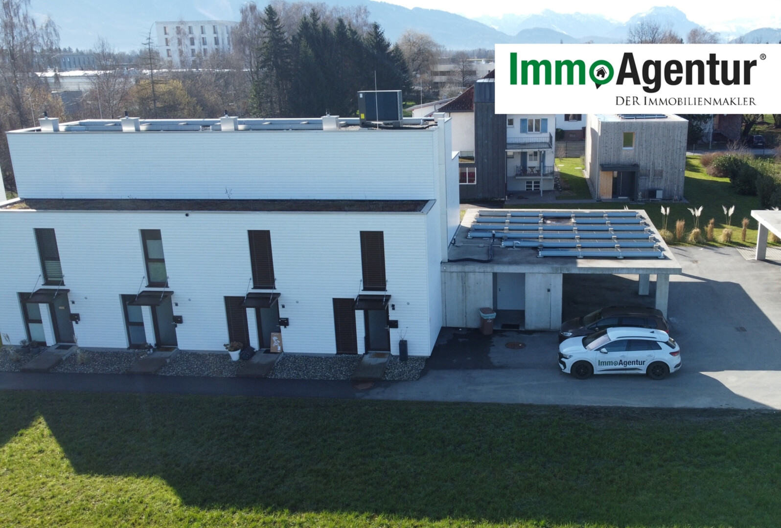 Die großzügige Terrasse erweitert den Wohnraum ins Freie und bietet außergewöhnlich viel Platz für Lounge-Bereiche, Essplatz oder individuelle Gestaltungsmöglichkeiten. Der direkte Zugang zu den Carportplätzen erhöht zusätzlich den praktischen Alltagskomfort.