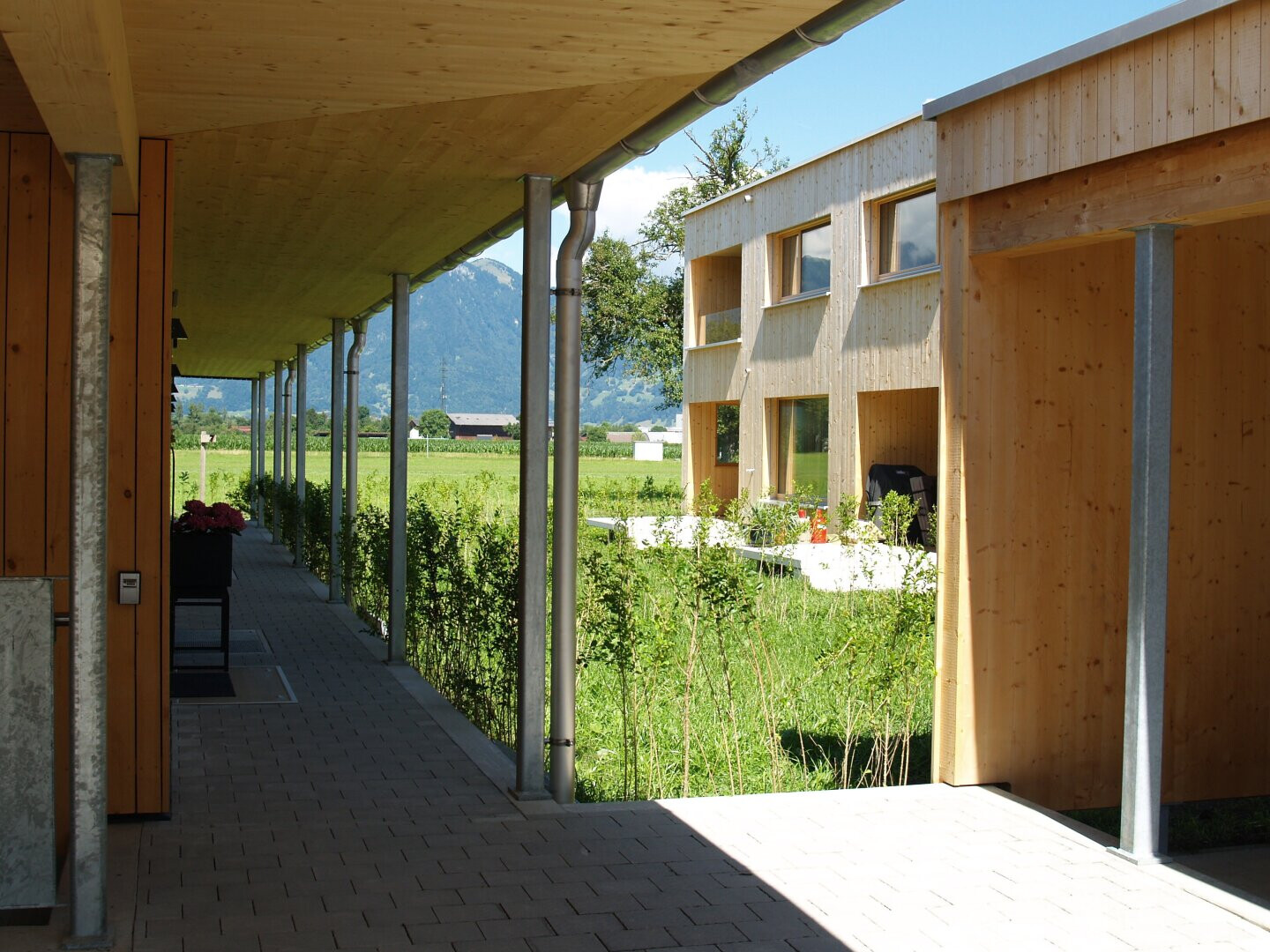 Mit unseren Vollholz-Doppel- und Reihenhäusern zeigen wir schon seit einigen Jahren Alternativen zum klassischen Einfamilienhaus auf. Unsere Häuser bieten all das, was Käufer*innen von einem vollwertigen Haus erwarten. Nur eben in etwas anderer Form. Mit dem Reihenhausprojekt am Guldenäcker in Feldkirch-Gisingen bringen wir eine neue Größe – 107 m2 Wohnfläche – ins Spiel und haben auch sonst ein paar findige Adaptierungen vorgenommen.