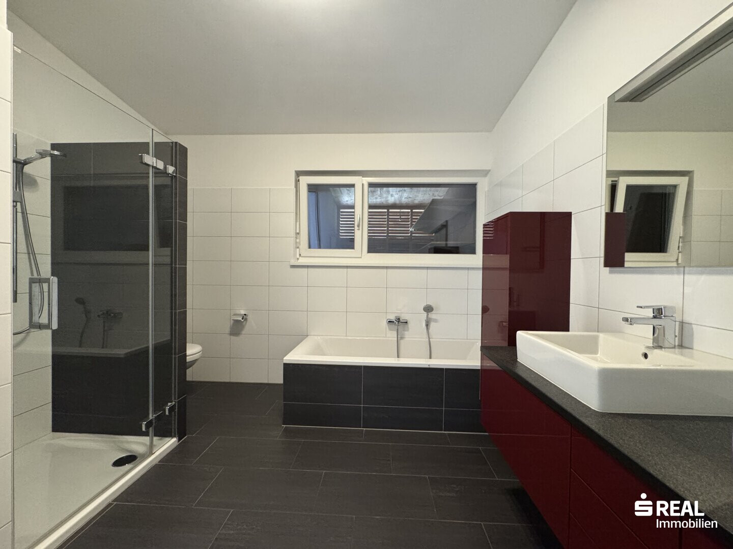 - Bad mit Badewanne, Dusche, WC und Fenster