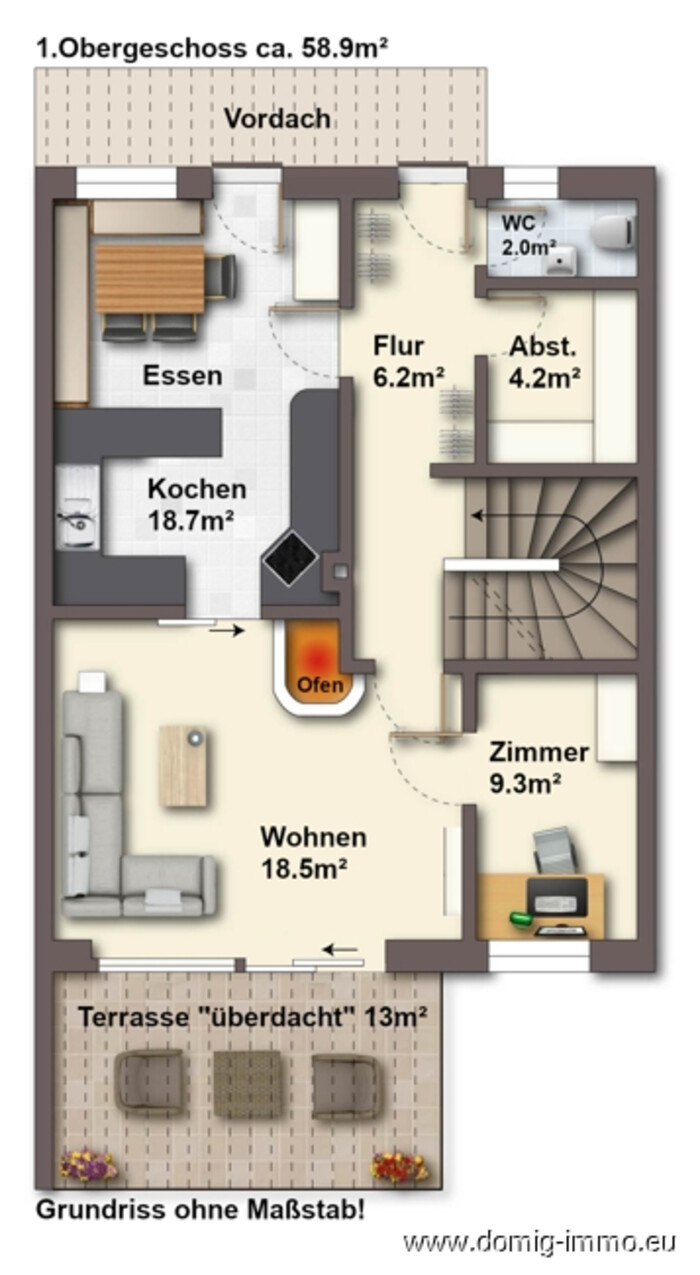 Betriebskosten monatlich: ca. € 190.- (Strom, Kanal, Wasser, Müll, Gas)