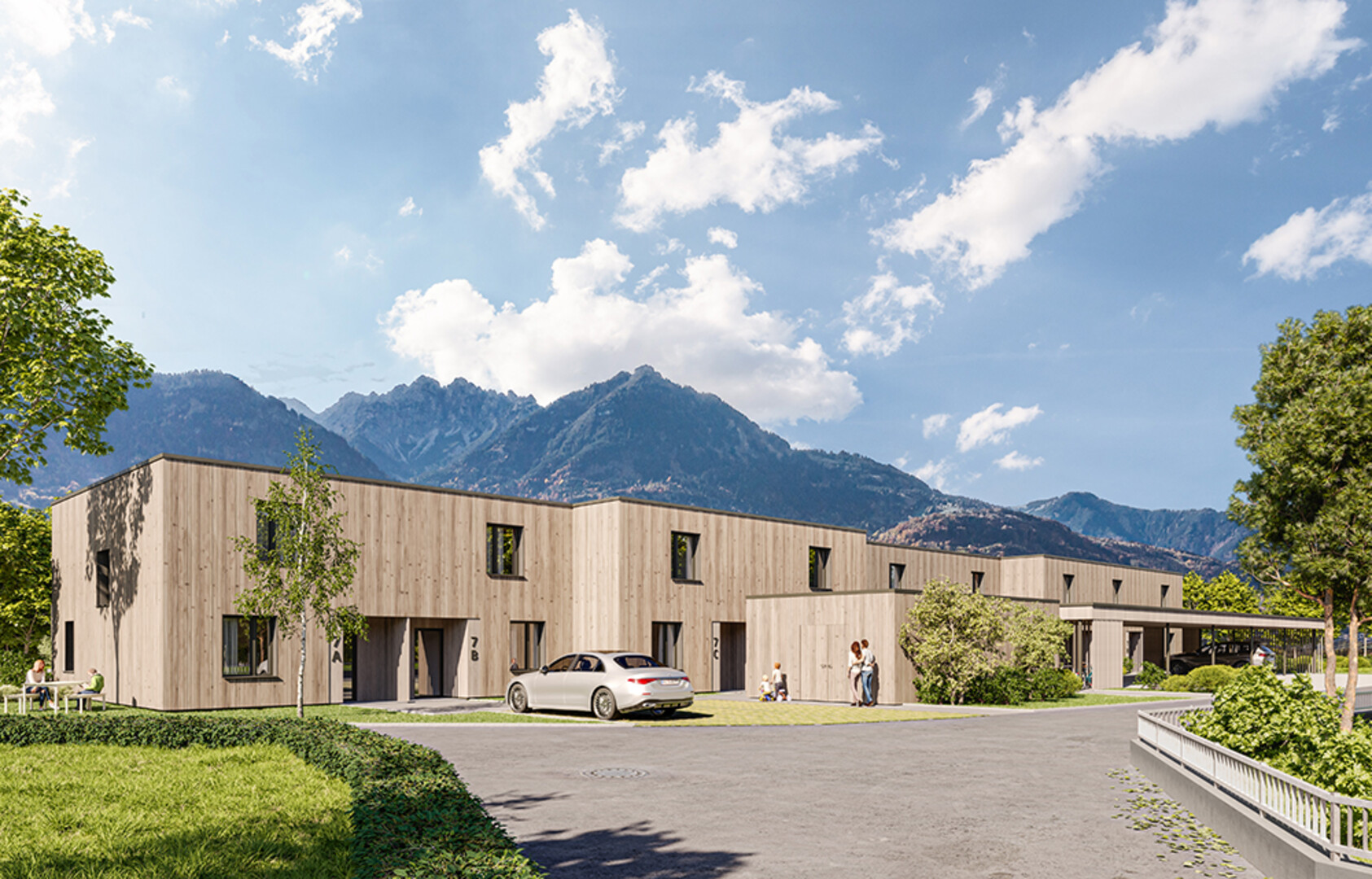 In ruhiger Lage in Schlins werden neun stilvolle Reihenhäuser verwirklicht, die dank durchdachter Planung auf ca. 100 m² Wohnfläche genügend Raum für individuelle Bedürfnisse bieten. Die Holzbauweise sorgt für ein einzigartiges Wohngefühl und ein ideales Raumklima.