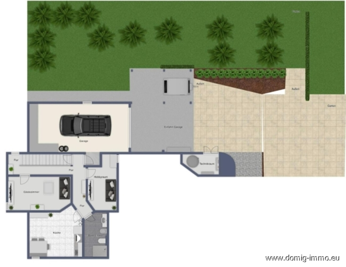 •Separate Gästebereiche im Untergeschoss mit Kochzeile