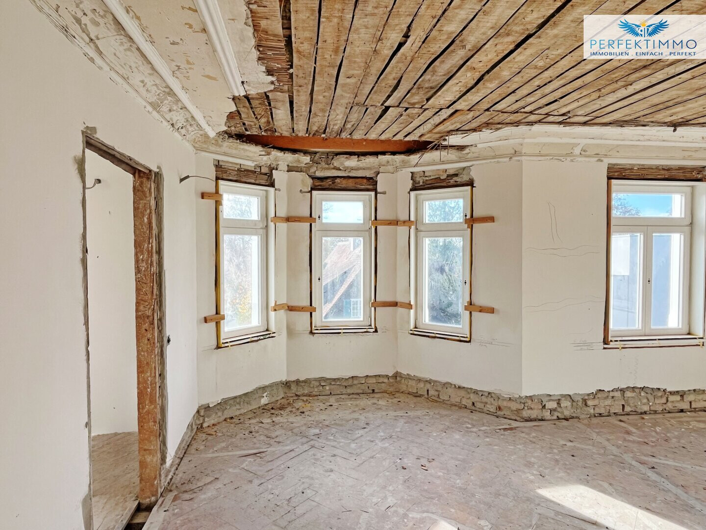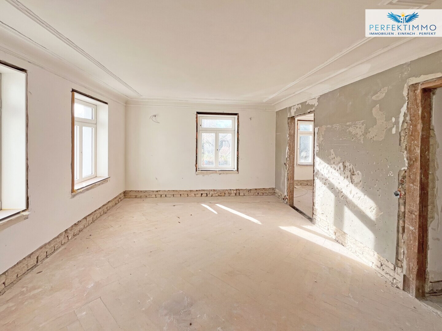 Derzeit befindet sich die Villa in einer Umbau- beziehungsweise Sanierungsphase, was Käufern zusätzliche Gestaltungsfreiheit eröffnet. Auf Wunsch kann das Objekt im Ist-Zustand übernommen und nach eigenen Wünschen und Bedürfnissen fertiggestellt werden, wobei sich der Kaufpreis in diesem Fall auf € 1.750.000 beläuft. Alternativ besteht die Möglichkeit, die Immobilie erst nach einer vom Verkäufer durchgeführten Generalsanierung um einen Aufpreis zu erwerben.