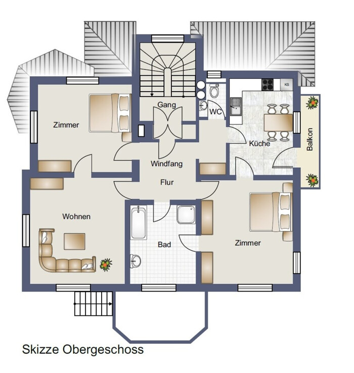 ✔️ das Dachgeschoss zu einer hochwertigen Wohnung ausgebaut
