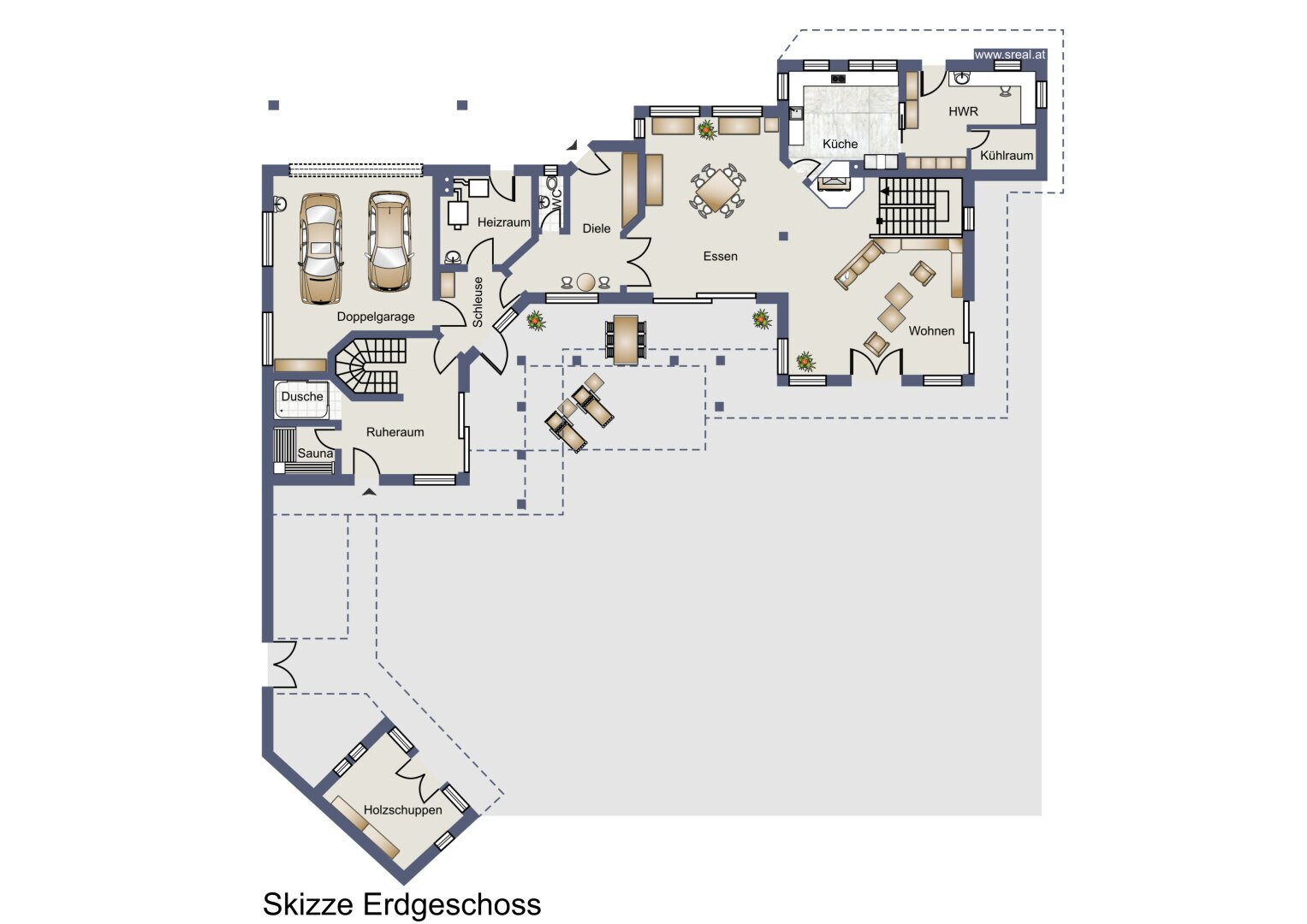 - Die geräumige Doppelgarage bietet komfortabel Platz für Fahrzeuge und zusätzlichen Stauraum.