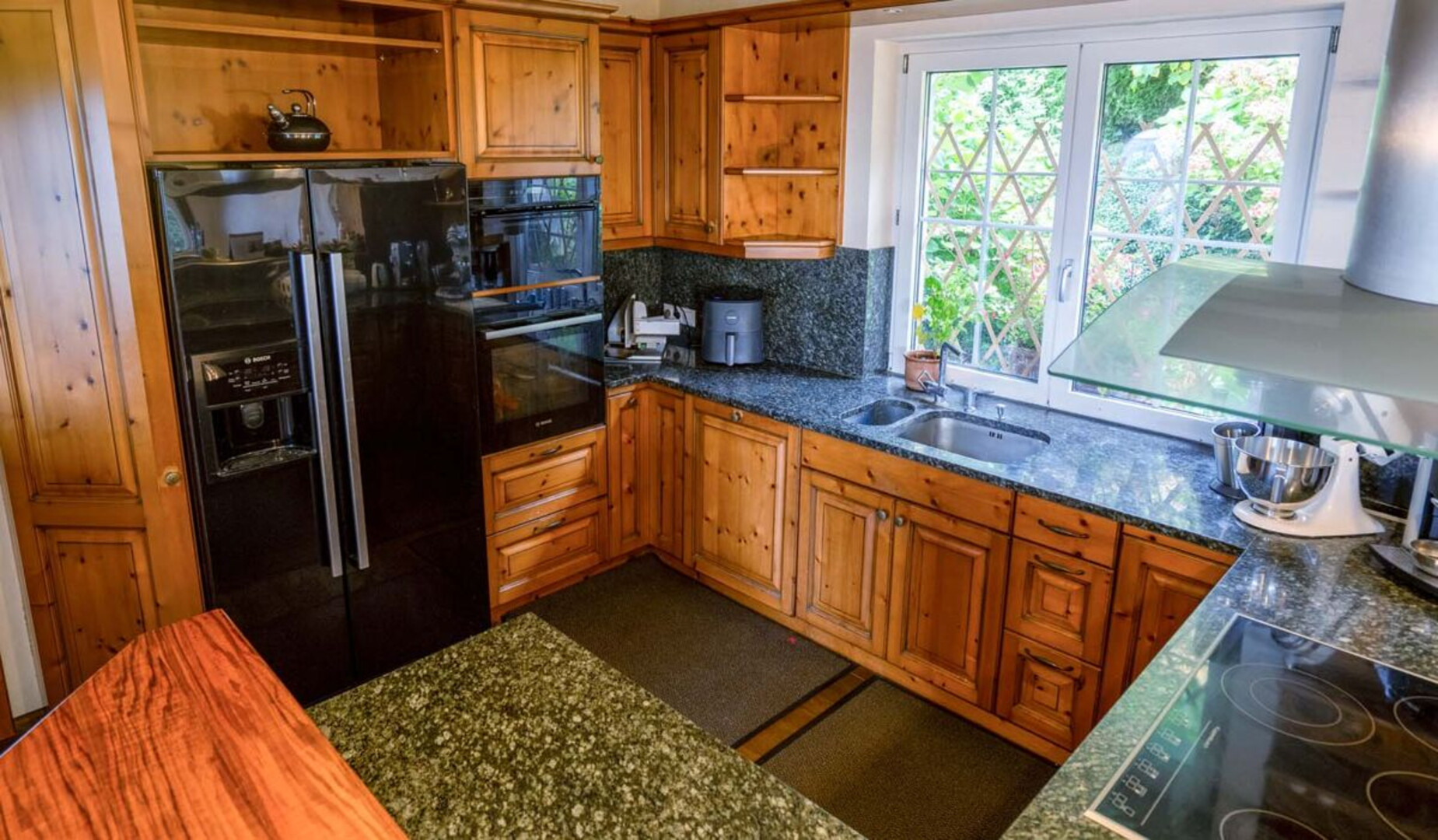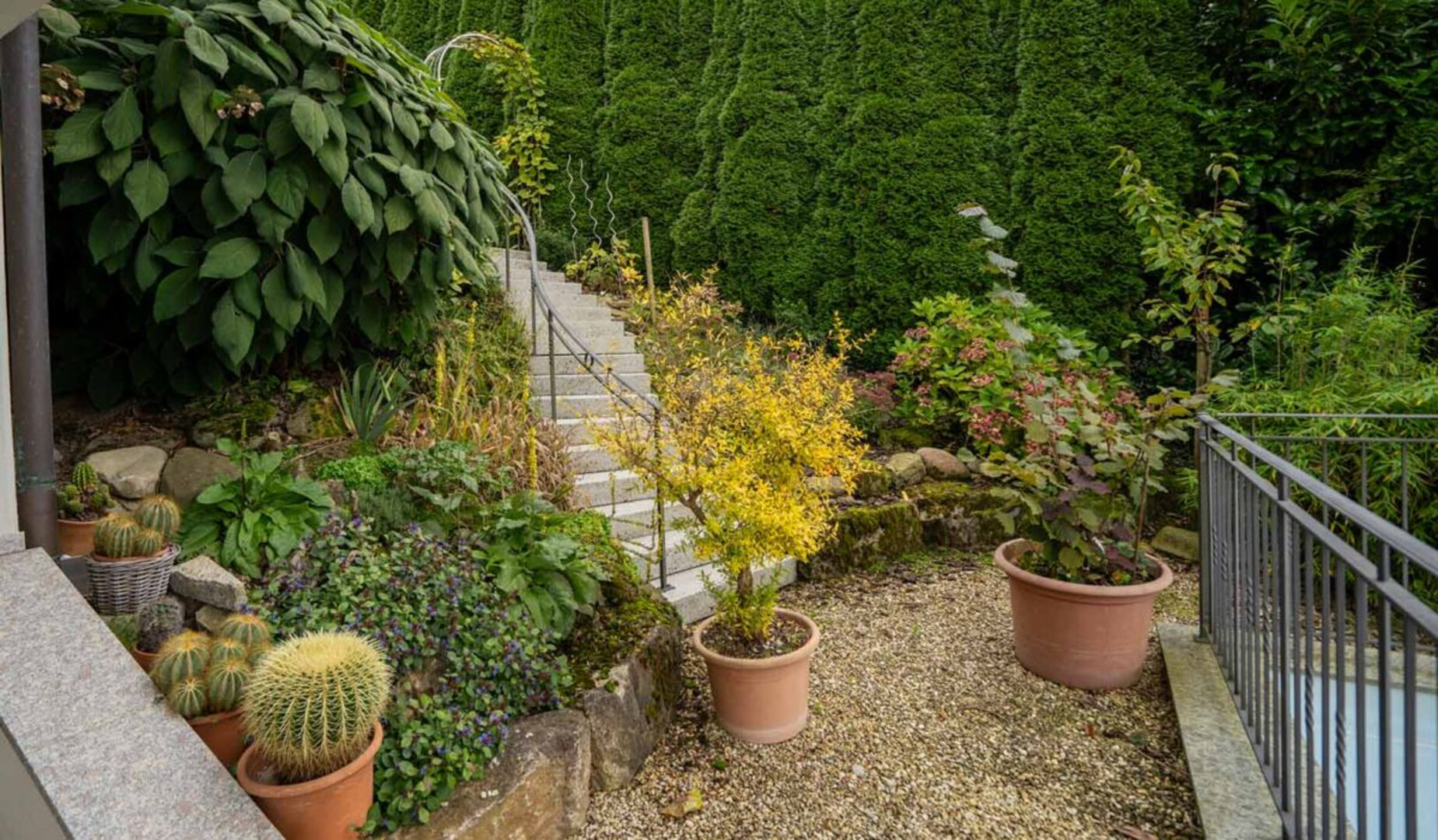 Der liebevoll angelegte, pflegeleichte Garten mit Gewächshaus rundet dieses besondere Anwesen harmonisch ab und bietet zusätzliche Möglichkeiten für Erholung und Freizeit im Grünen.