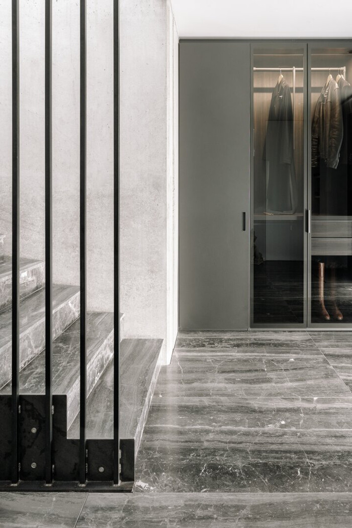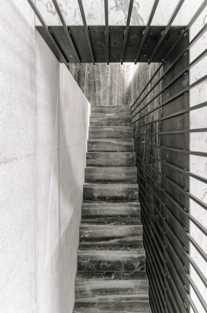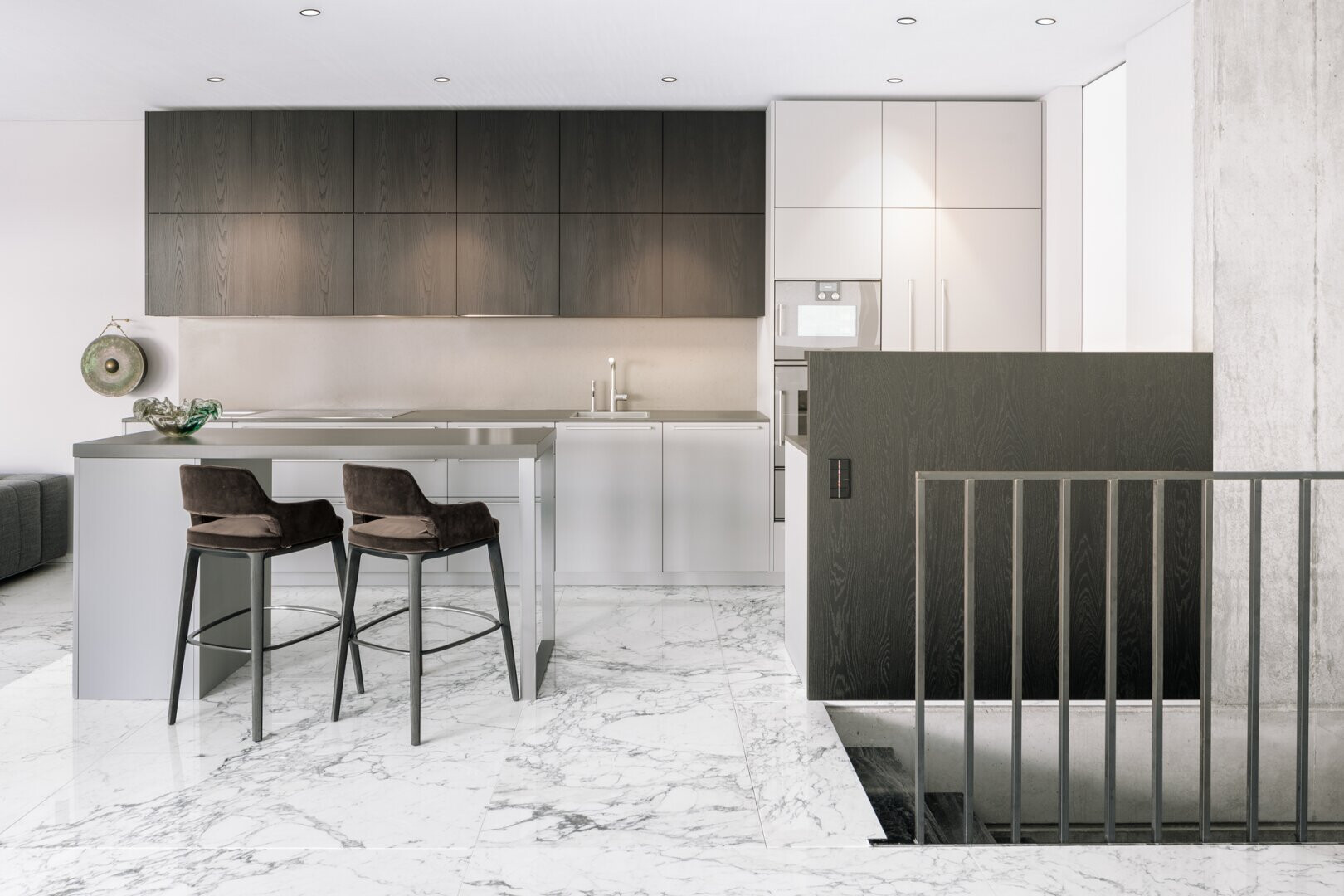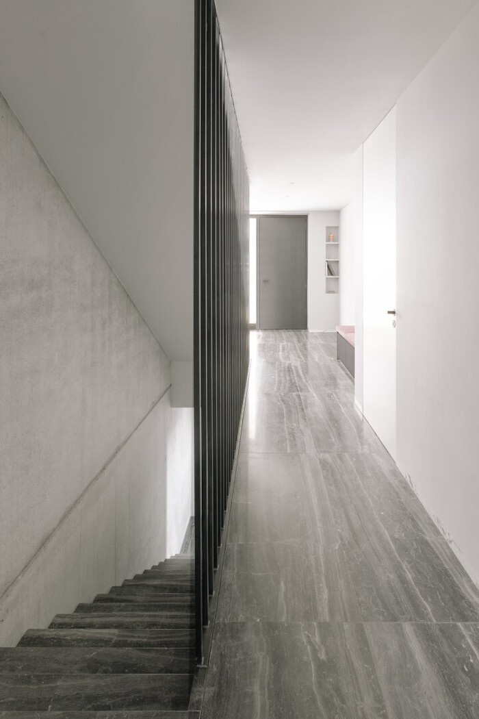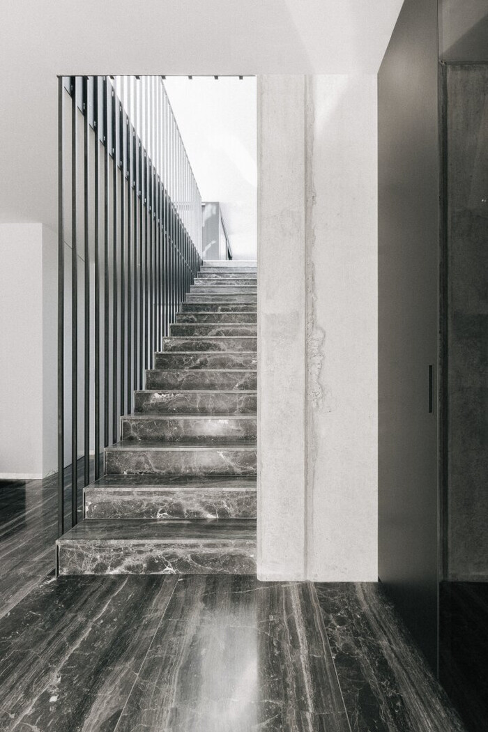 Zudem garantiert die durchdachte Gestaltung die Uneinsehbarkeit sämtlicher Innenräume sowie der oberen Terrasse, wodurch höchste Privatsphäre gewährleistet ist. Besondere Highlights wie die raumhohen, flächenbündigen Türen und Fenster verleihen den Räumen nicht nur eine beeindruckende Großzügigkeit, sondern sorgen durch ihre klare Linienführung für ein modernes und elegantes Erscheinungsbild.