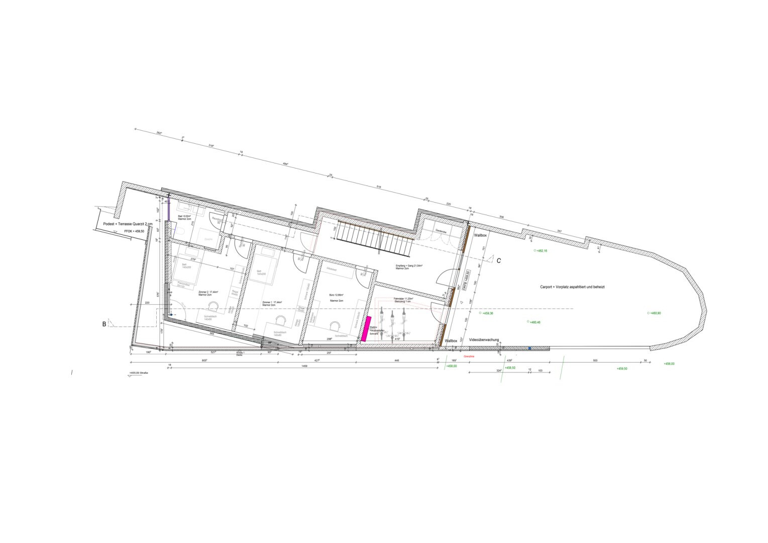 Zusätzlich ist ein Plattformlift konstruktiv vorgesehen, um höchsten Komfort und barrierefreien Zugang in jeder Lebenszeit zu gewährleisten.