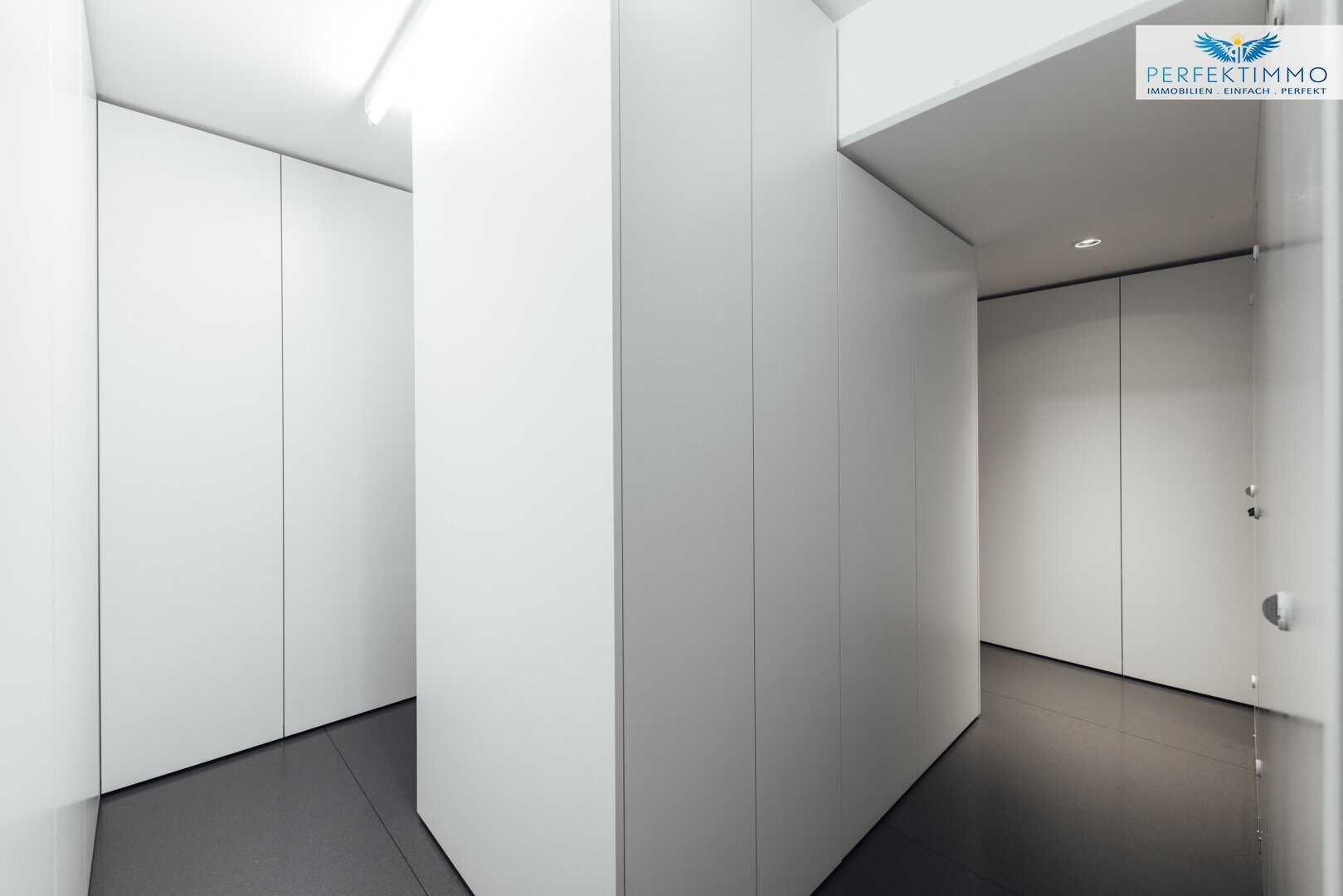 Weitere Highlights sind ein Weinkeller mit Weinregalen, eine hochwertige Lista-Werkbank mit Werkzeugschrank sowie maßgefertigte Tischler-Einbaumöbel. Die großzügige Dachterrasse mit Markise und eine Pergola mit Abstellraum für Gartenmöbel runden das exklusive Gesamtpaket ab.