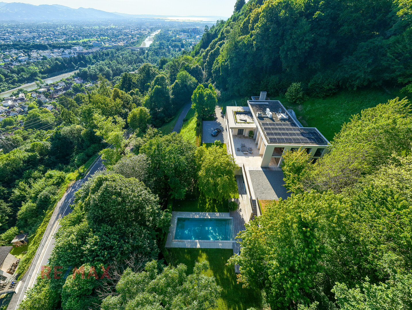 In privilegierter Panoramalage hoch über dem Vorarlberger Rheintal verbindet diese Villa beeindruckende Aussichten mit urbaner Nähe - ein , der Ruhe und Komfort auf höchstem Niveau vereint. Das Anwesen ist nicht nur ein Zuhause, sondern ein architektonisches Statement moderner Wohnkultur, geschaffen für Menschen mit Sinn für das Besondere.