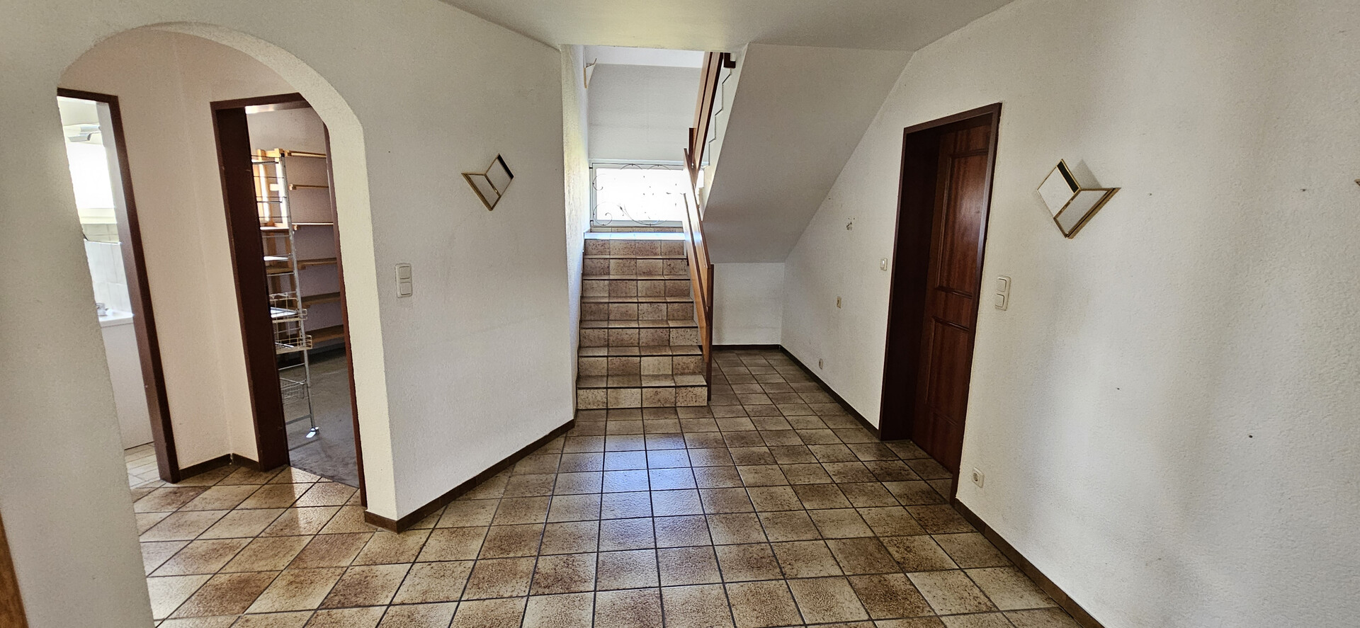 Im OG sind weitere 3 große Zimmer (ca. 40 m²) nutzbar die jedoch nur über einen schmalen Gehbereich von ca. 1-2m in Höhe von ca. 2 m verfügen. Dennoch als Kinderzimmer oder Bibliothek ausgezeichnet nutzbar.