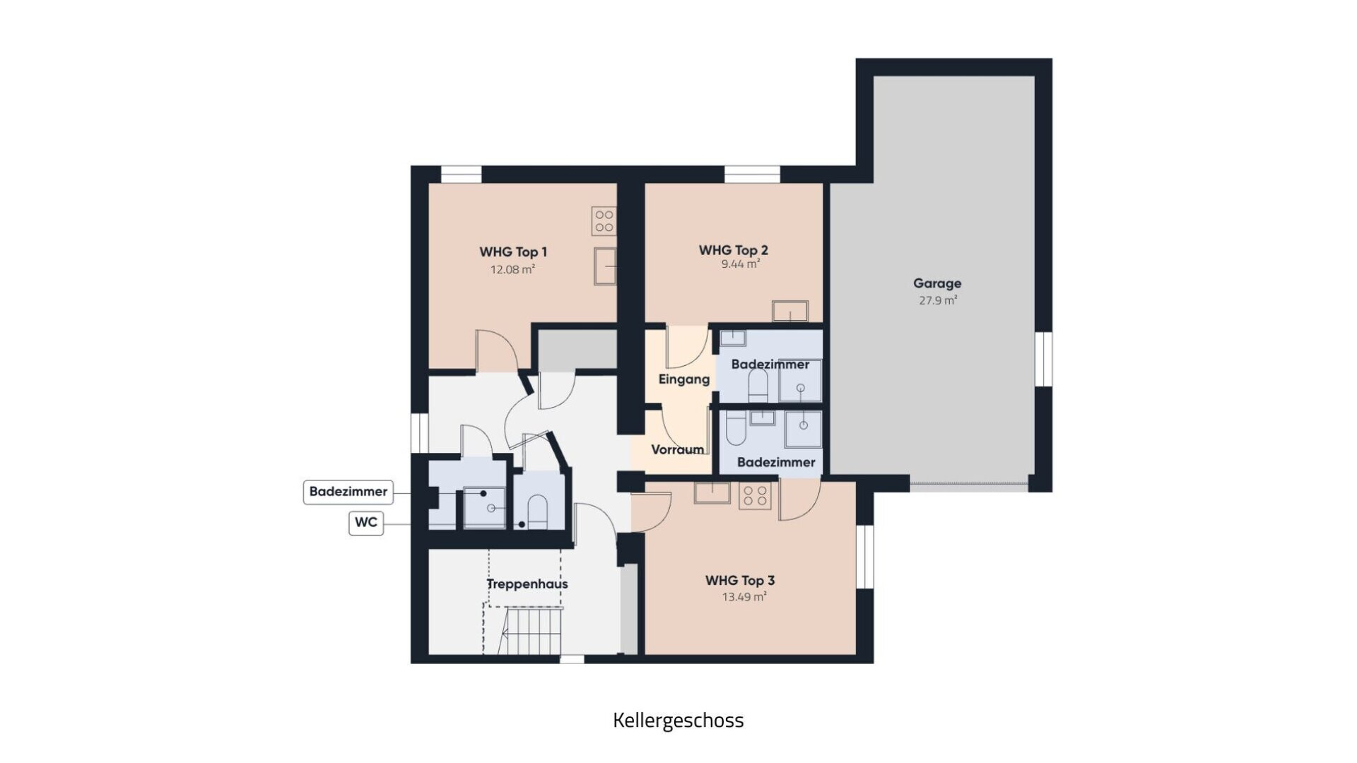 Dieses kompakte Mehrfamilienhaus erstreckt sich über Untergeschoss, Erdgeschoss und Obergeschoss und umfasst insgesamt neun Wohneinheiten. Die Einheiten sind als kleine Wohnungen beziehungsweise Zimmer gestaltet und eignen sich ideal für Singles, Pendler oder Mitarbeiterwohnungen. Acht der neun Einheiten sind derzeit vermietet und bieten sofortige Mieteinnahmen, eine Einheit steht für eine Neuvermietung zur Verfügung.