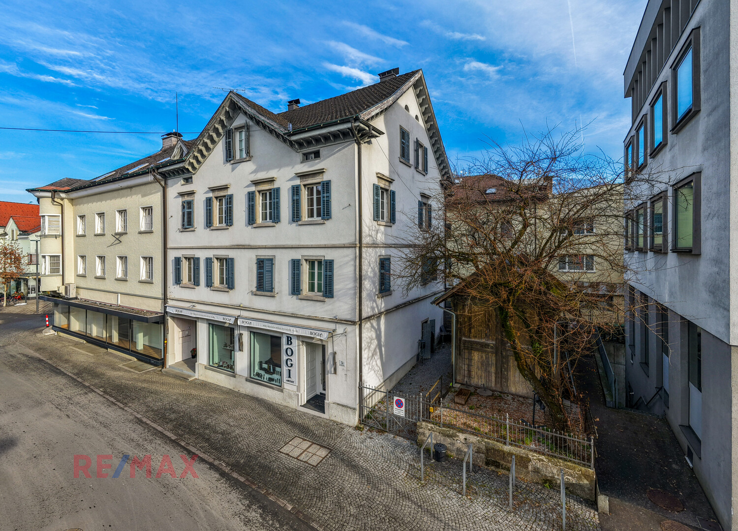 Zum Verkauf steht ein attraktives Zinshaus in absoluter Bestlage von Dornbirn. Die Liegenschaft befindet sich mitten im Stadtzentrum und überzeugt durch ihre hervorragende Sichtbarkeit, Frequenzlage sowie den unverwechselbaren Charme eines Stadthauses. Die Immobilie umfasst ein großzügiges Geschäftslokal im Erdgeschoss sowie drei Wohneinheiten in den Obergeschossen. Aktuell sind das Geschäftslokal sowie zwei der drei Wohnungen zuverlässig vermietet und bieten damit bereits ab dem Erwerb eine solide laufende Einnahmebasis.