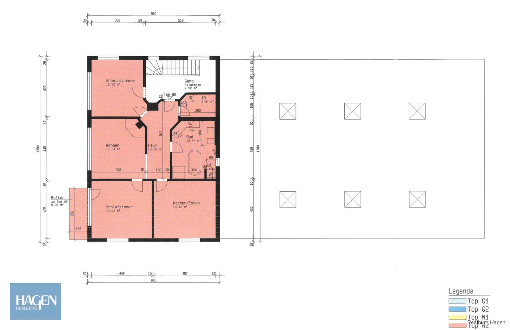 Derzeit vermietet sind das 1. OG der Geschäftsfläche 2 sowie beide Wohnungen.