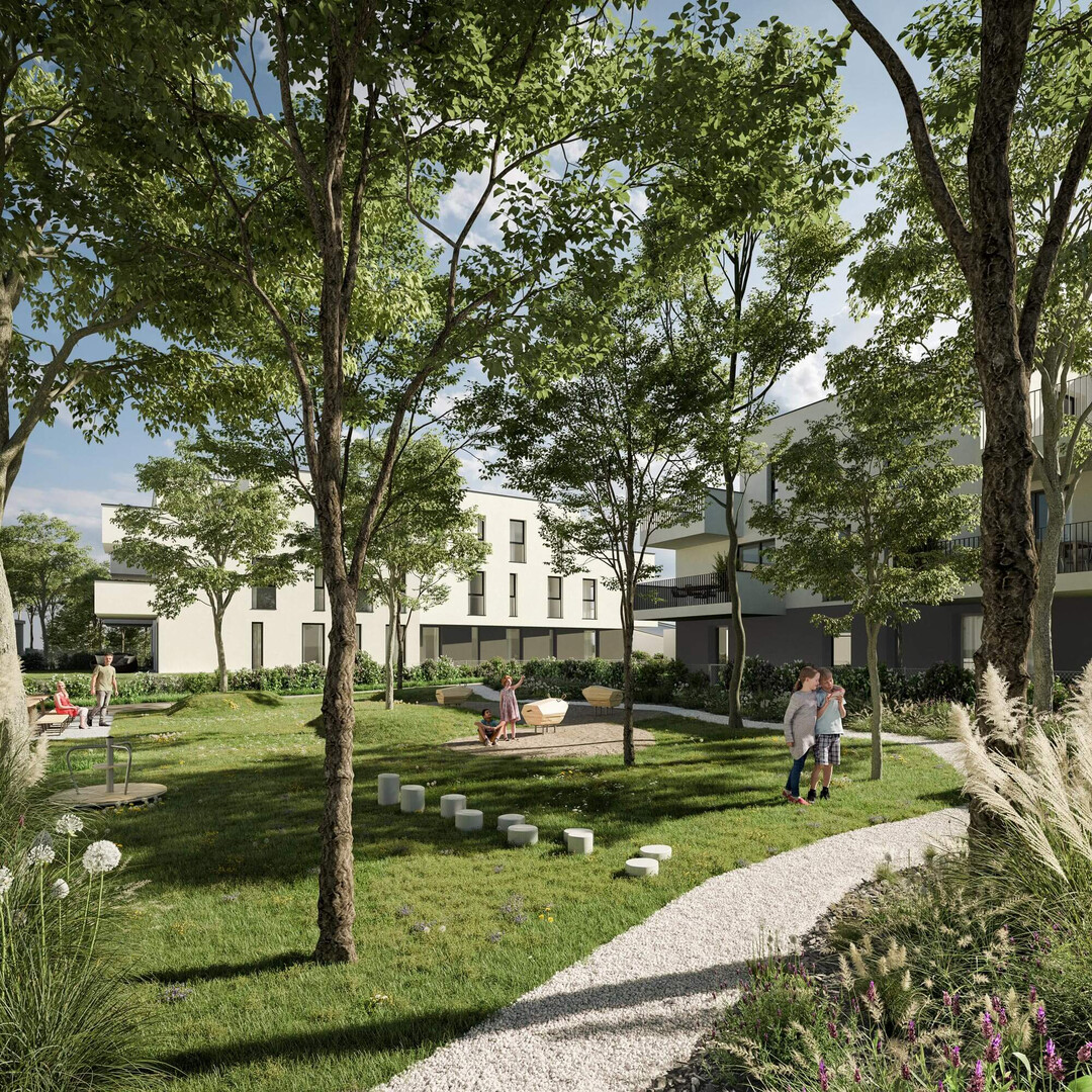 Die Wohnanlage Leovita ist autofrei, PKWs können in der hauseigenen Tiefgarage oder auf einem Freistellplatz parken.