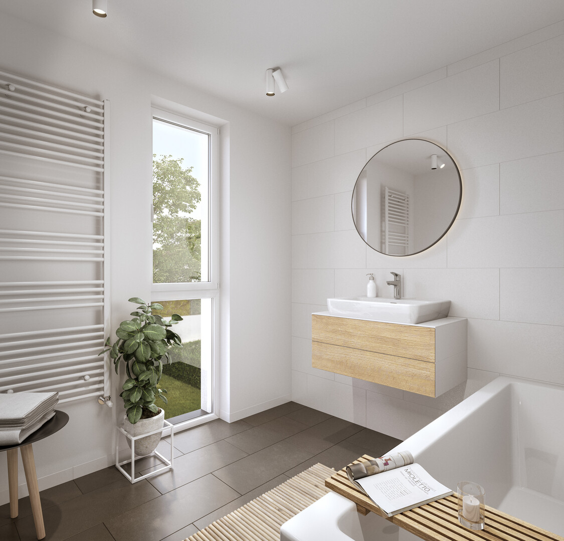 3-fach-Isolierverglasung, Fußbodenheizung mit Fernwärme sowie einbruchshemmende Türen der Widerstandsklasse 3 tragen zur Energieeffizienz und Sicherheit bei. Barrierefreie Hauseingänge und eine erweiterbare Videogegensprechanlage runden das Gesamtpaket ab.