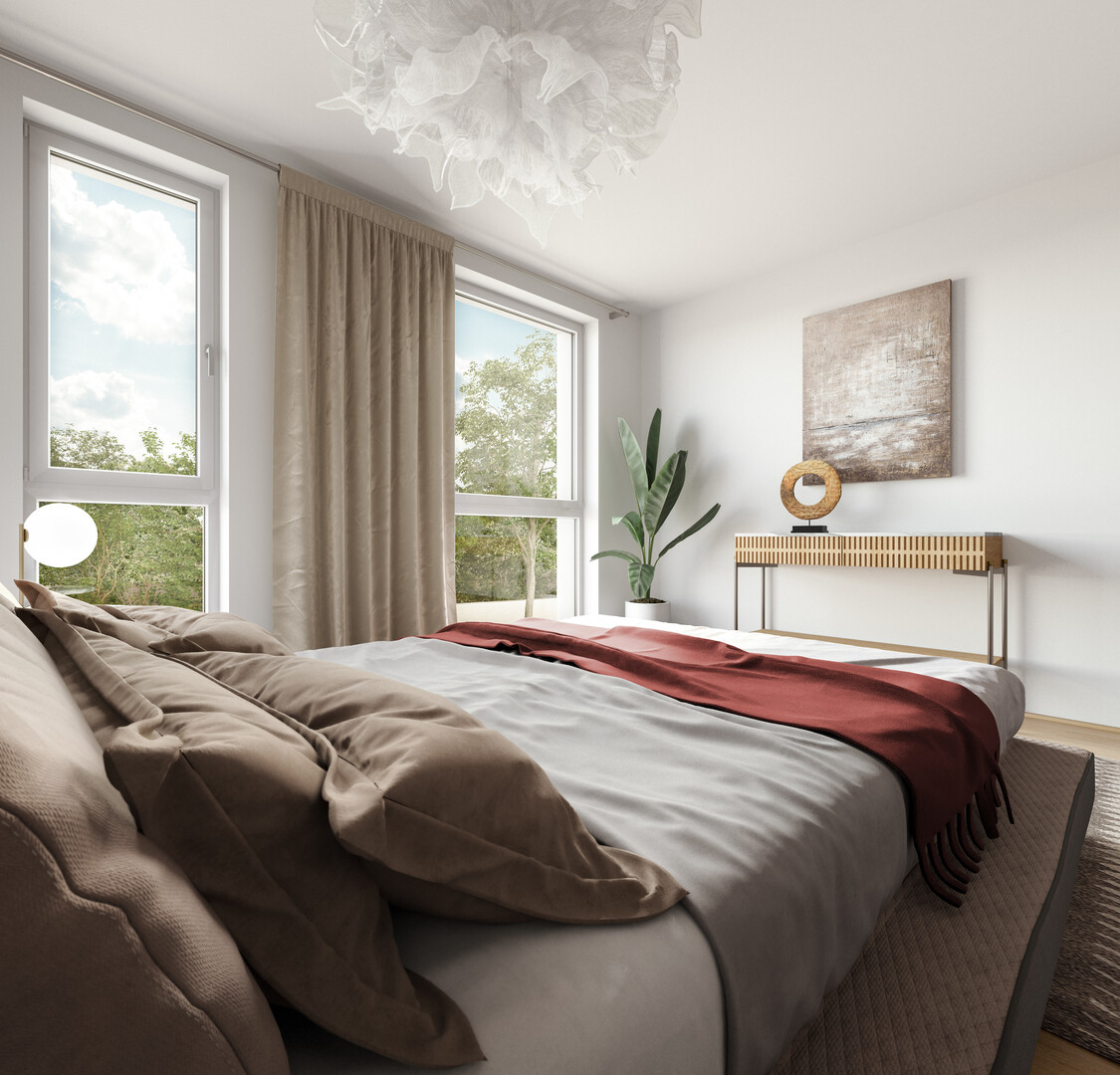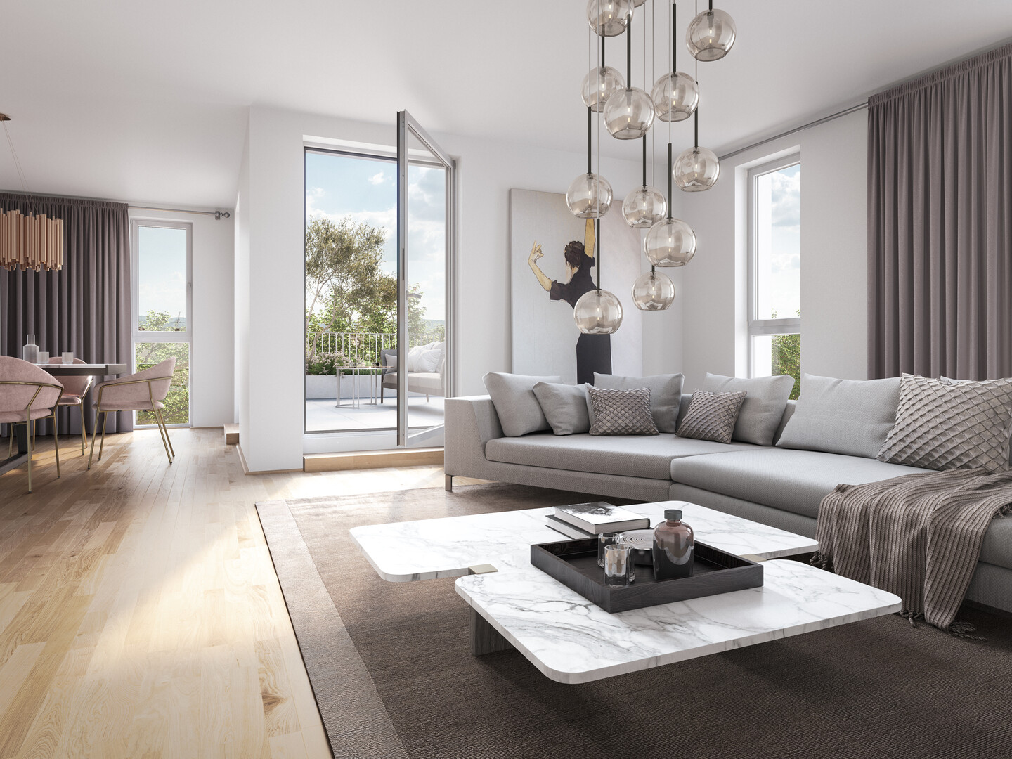 Die Wohnungen überzeugen durch edle Eichenparkettböden, bodentiefe Fensterfronten und eine exklusive Badausstattung von namhaften Herstellern. Haptisch angenehme Materialien, hochwertige Armaturen und eine durchdachte Raumaufteilung sorgen für Wohnkomfort auf hohem Niveau.