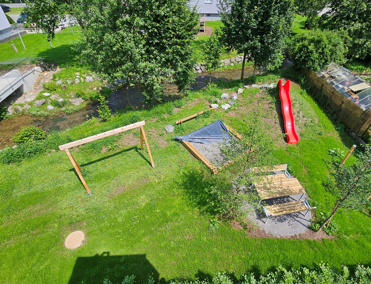 Die Bushaltestelle ist nur wenig Meter entfernt und über die neue Fußgängerbrücke über den Schwarzbach erreichbar. Die Volksschule und die Kinderbetreuung im neuen Campus sind etwa 300 m entfernt.