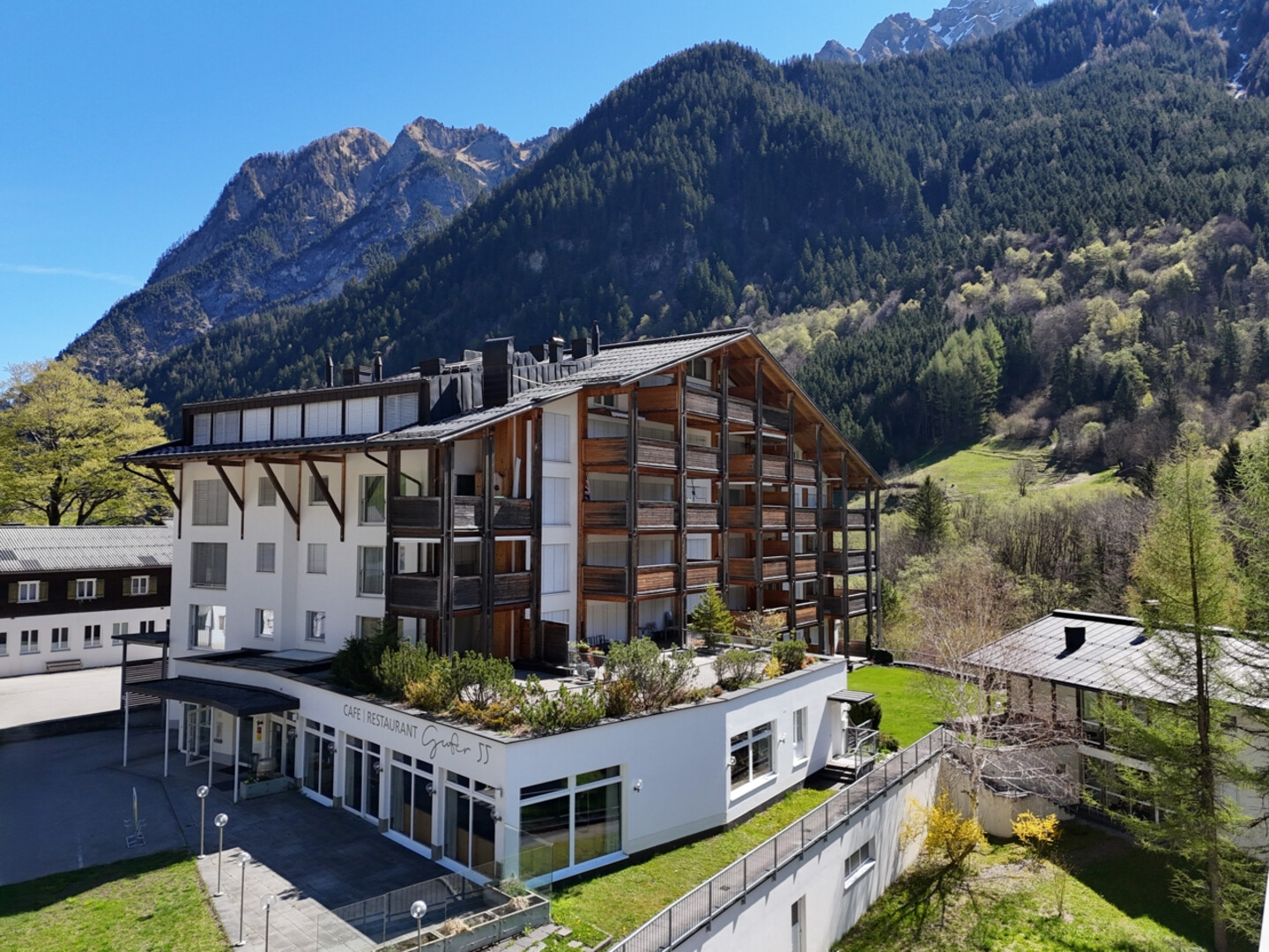 Ein weiteres exklusives Plus: Im Haus befindet sich das renommierte Restaurant Gufer 55, das mit Michelin-Sternen ausgezeichnet ist und kulinarische Erlebnisse auf höchstem Niveau bietet.