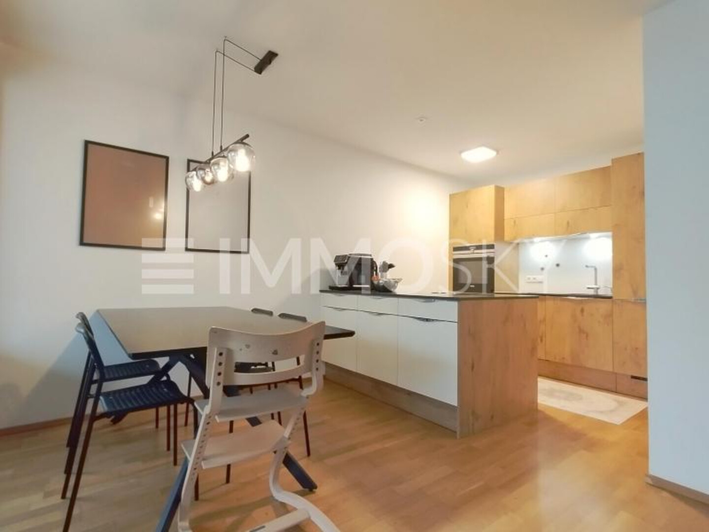 Diese gut geschnittene Wohnung bietet einen großzügigen Wohnbereich mit moderner Kücheninsel und Zugang zur Loggia. Hohe Räume und große Fenster mit 3-fach-Verglasung sorgen für viel Licht und ein angenehmes Wohngefühl. Das WC ist separat, kann aber mit dem Badezimmer verbindet werden.