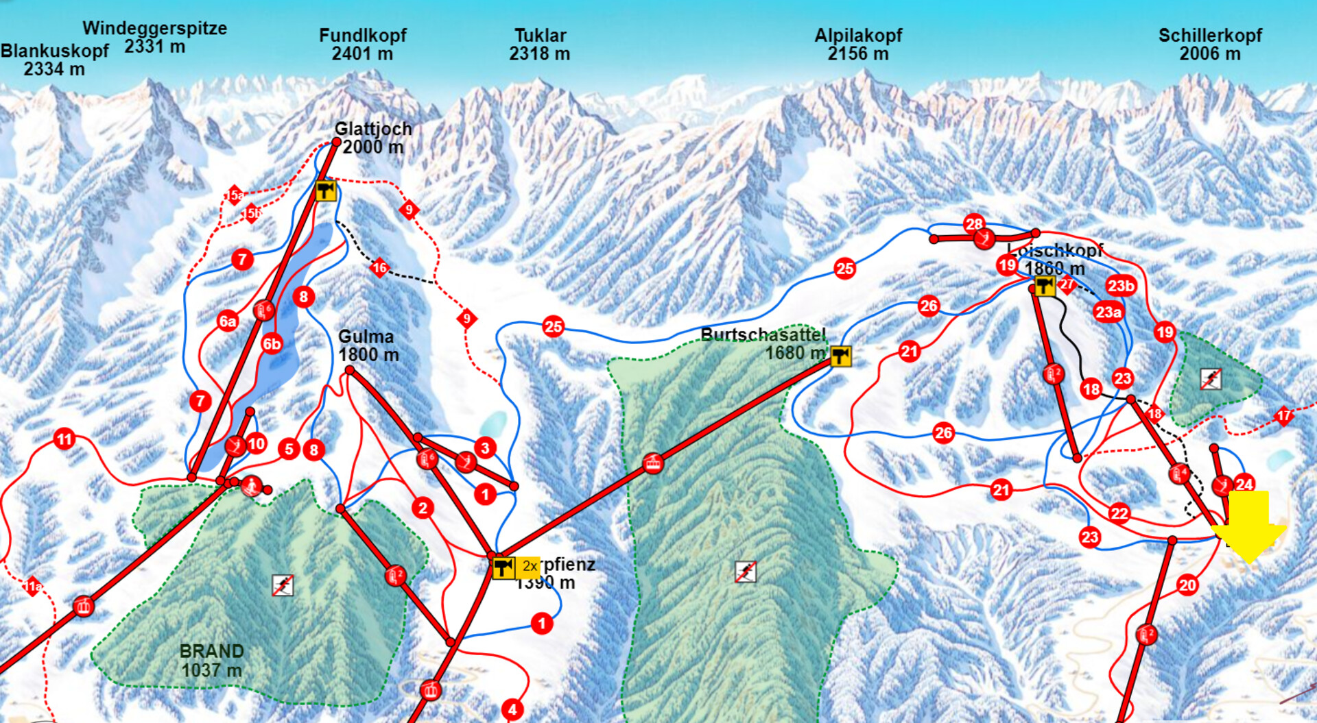 - mitten im attraktiven Skigebiet Brandnertal direkt an der Piste und der Mittelstation – ein bequemes Ski in & out wird Ihnen somit garantiert