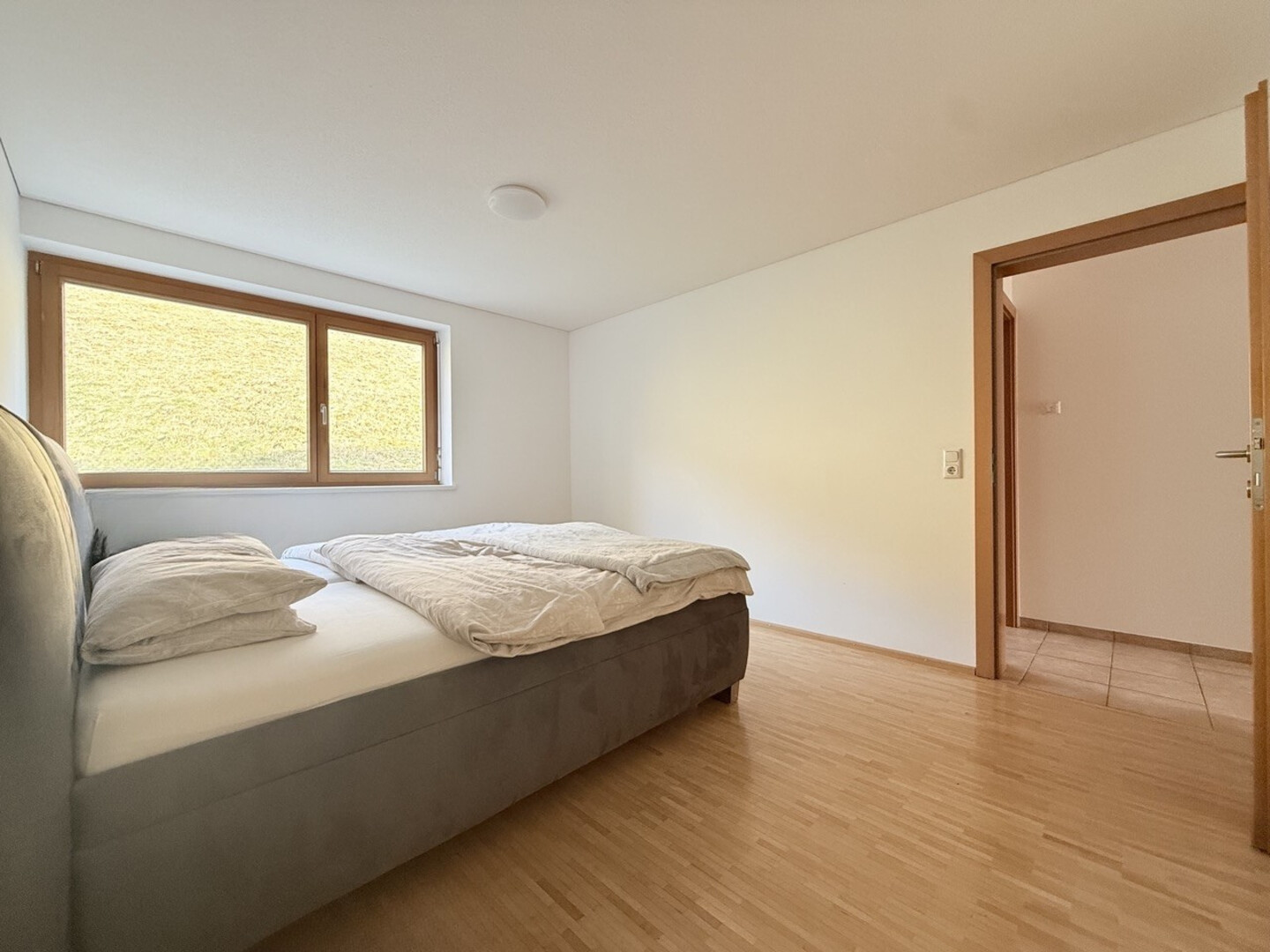 Die Wohnung verfügt außerdem über eine Loggia, die zum Entspannen einlädt und einen tollen Ausblick auf die umliegende Landschaft bietet – ein idealer Ort für den Morgenkaffee oder entspannte Abende im Freien.