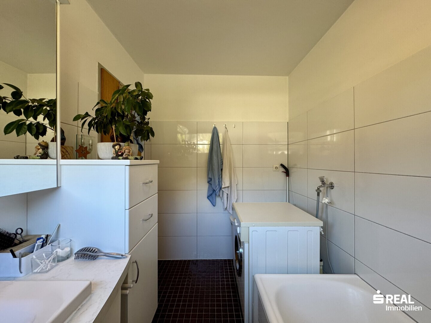 - Badezimmer (Waschbecken, Badewanne & WM-Anschluss)