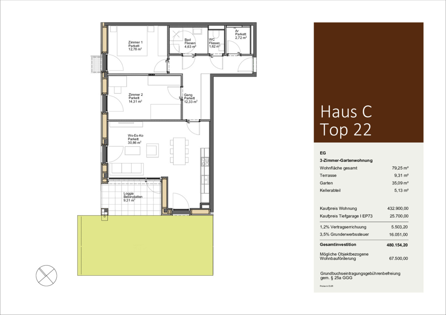 + mit objektbezogener Wohnbauförderung in der Höhe von € 64.500,00