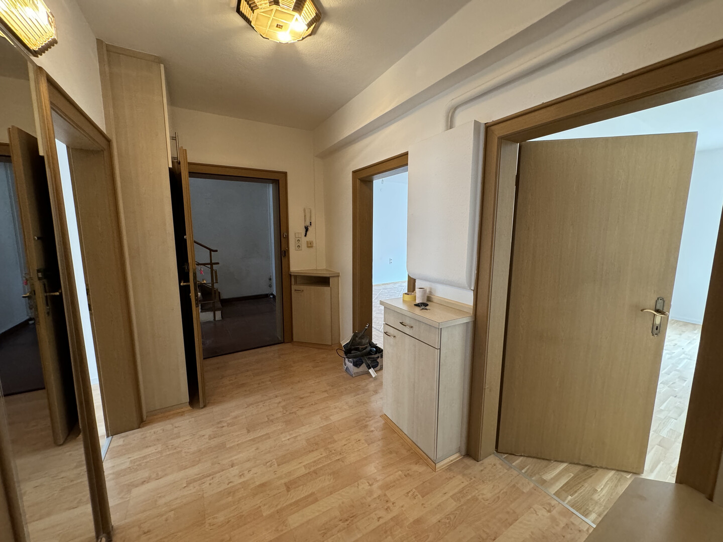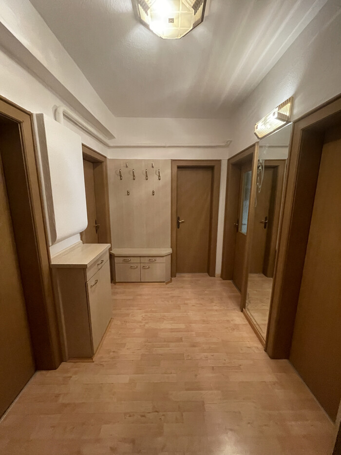 Die Wohnung bietet eine Wohnfläche von 87 Quadratmetern und verfügt über einen kleinen Balkon. Zudem gehört ein Kellerabteil zur Wohnung, das zusätzlichen Stauraum bietet.