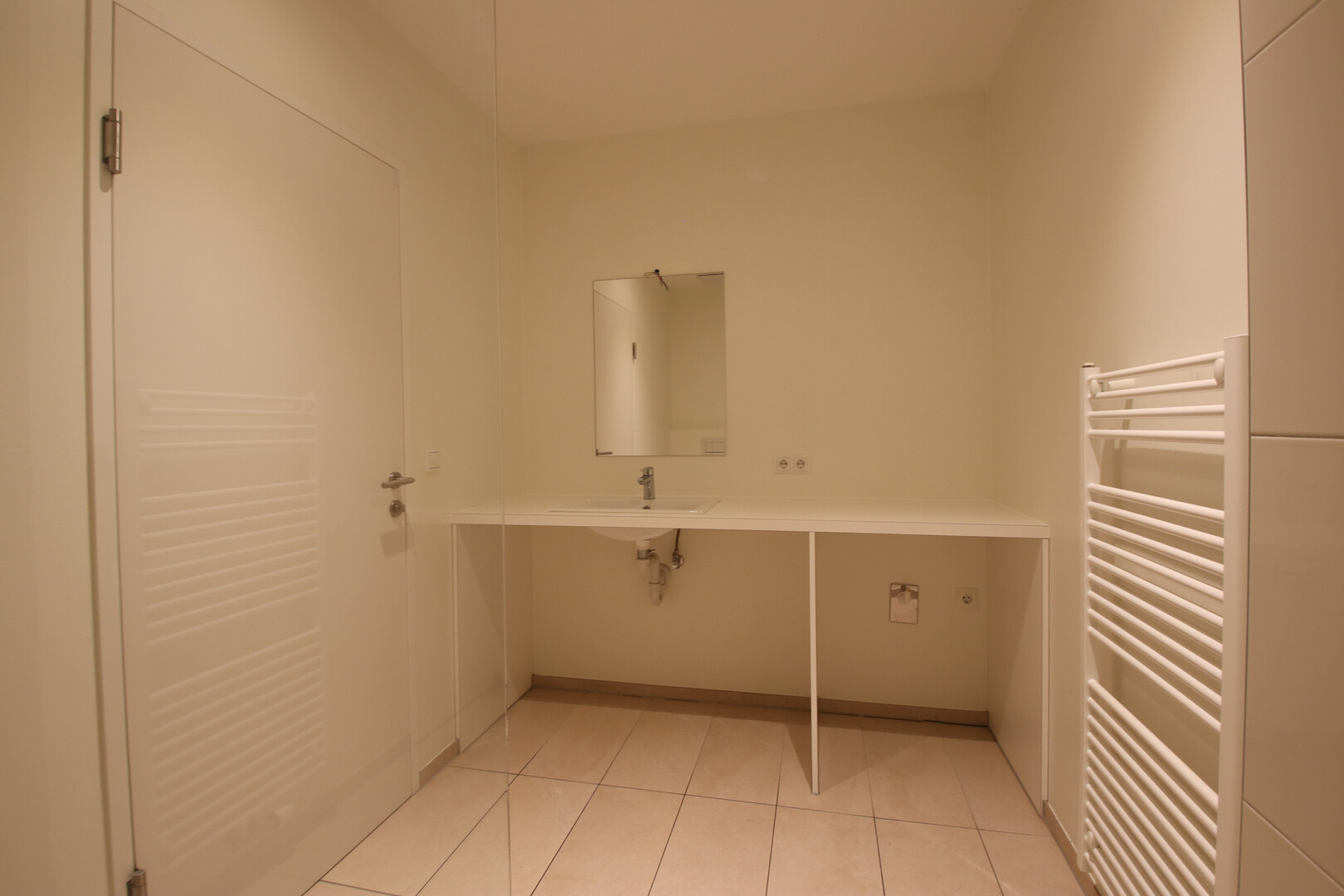 Rechterhand ersichtlich das Badezimmer mit moderner Sanitätseinrichtungen sowie einer barrierefreien Dusche.