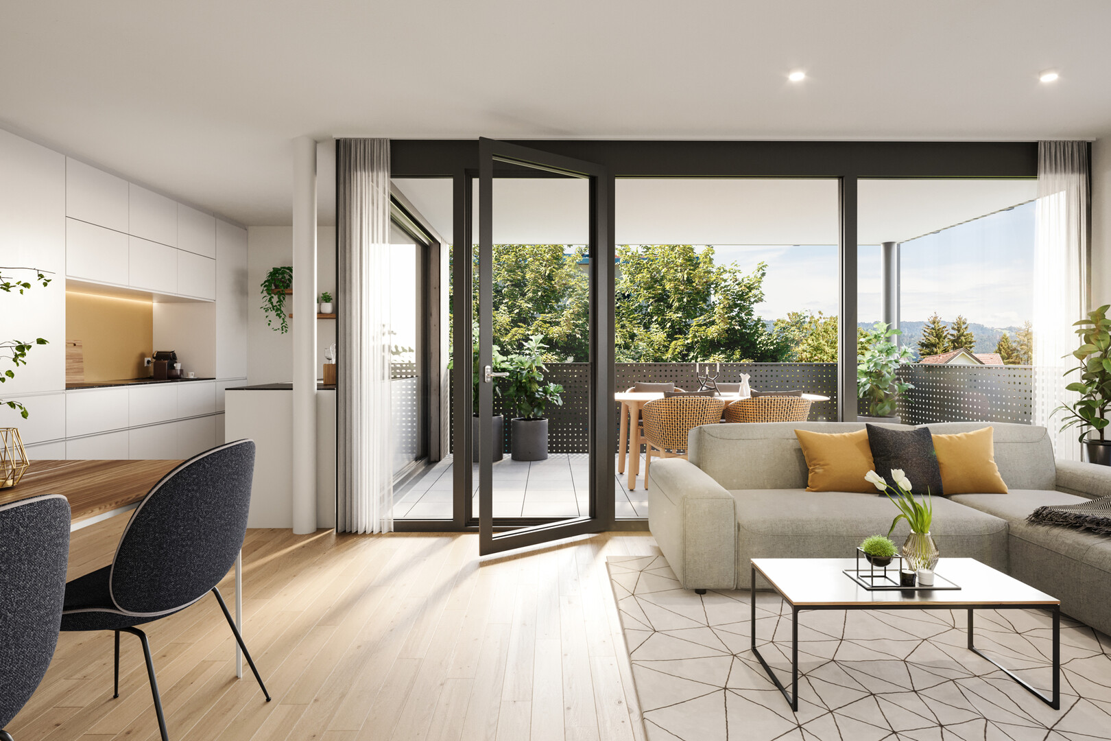 32 neue Wohnungen mit modernster Architektur, großzügigen Grundrissen und elegantem Design versprechen ein zeitgemäßes Leben im Herzen von Lauterach.