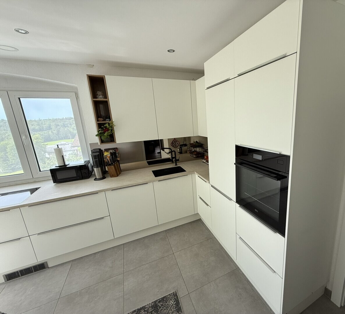 Die moderne Einbauküche wurde 2021 eingebaut und ist das Herzstück der Wohnung. Das Badezimmer ist mit einem Fenster ausgestattet, was für eine angenehme Belüftung sorgt, und bietet eine komfortable Dusche sowie ein separates Gäste-WC.