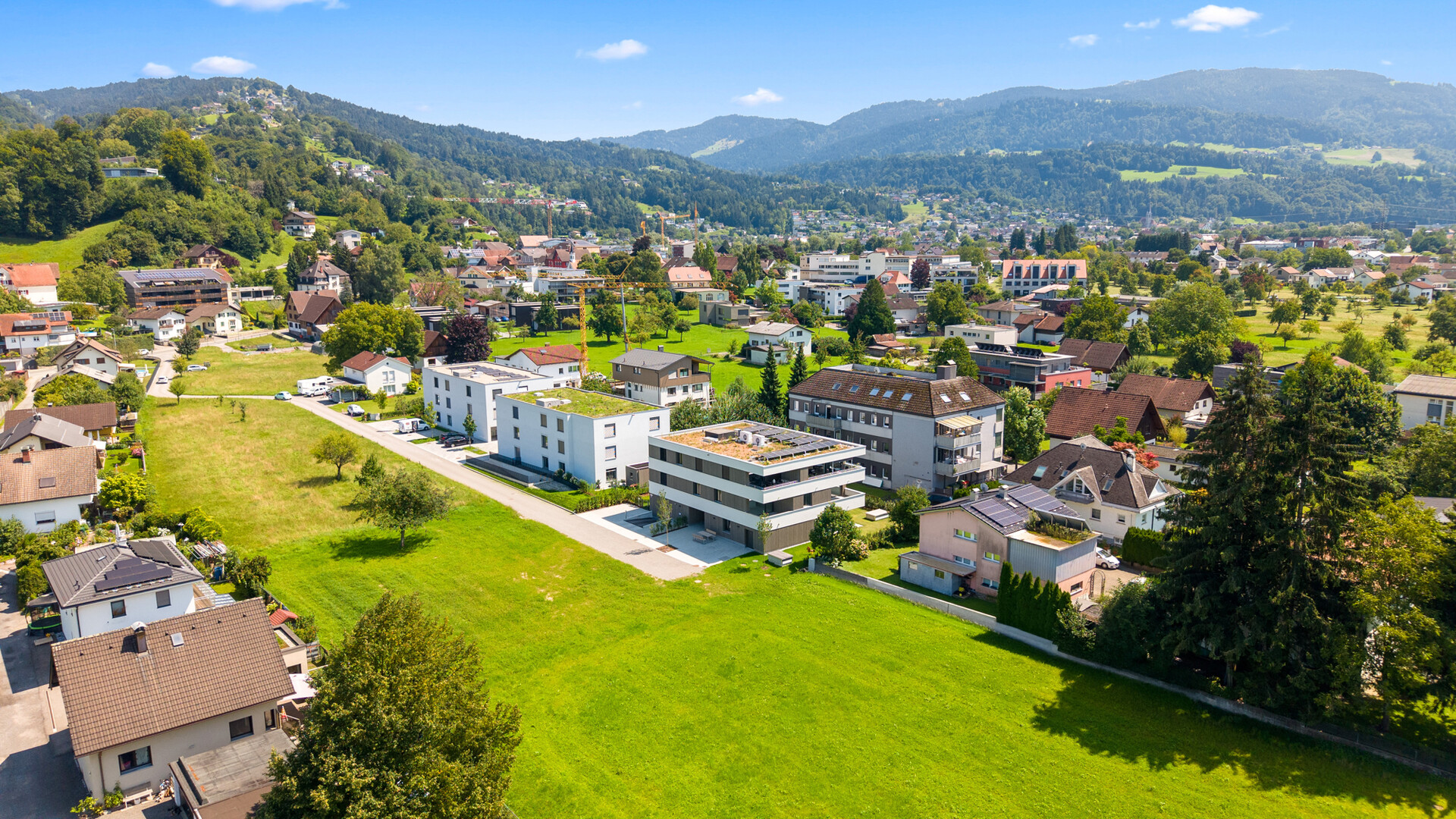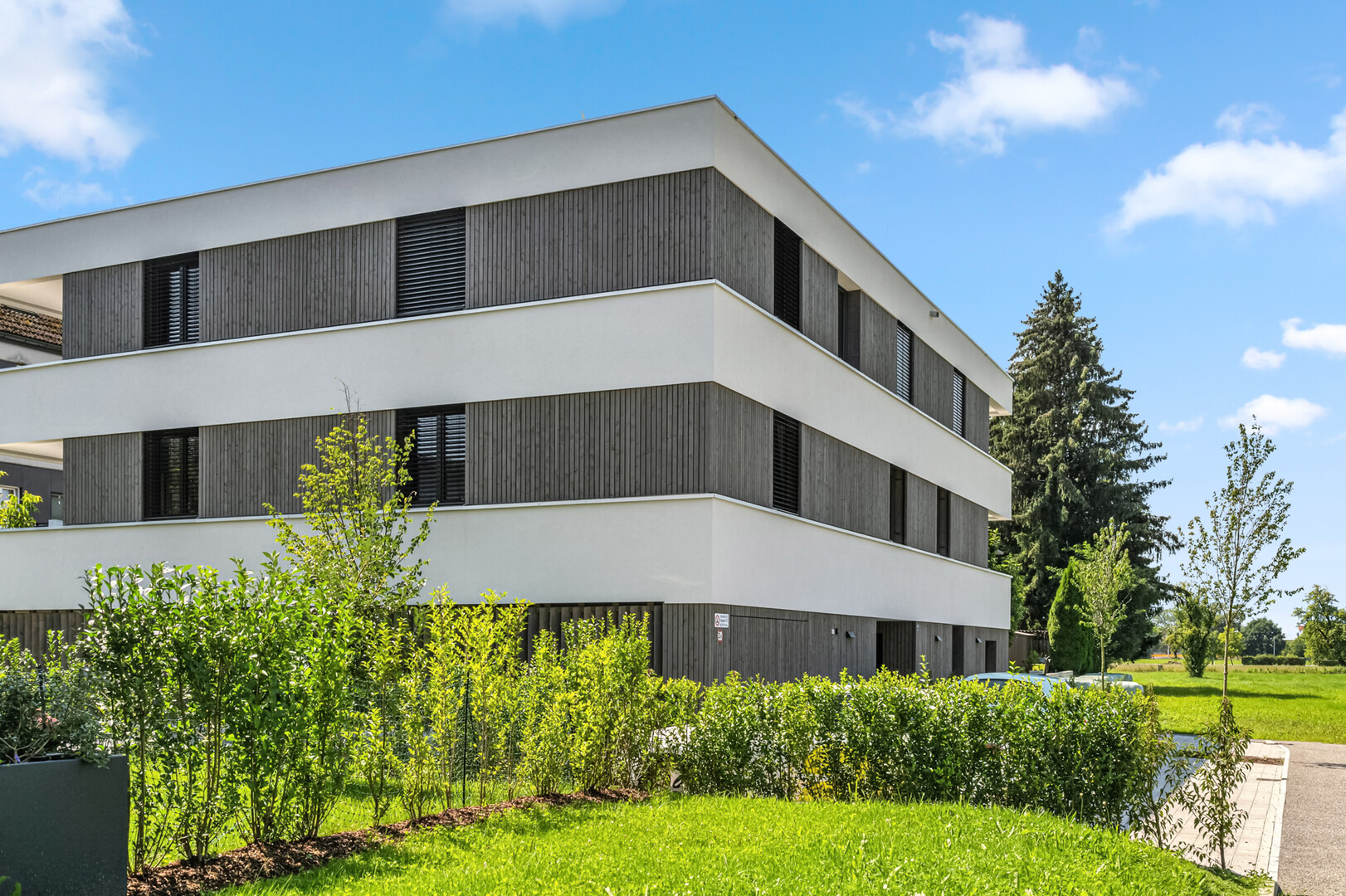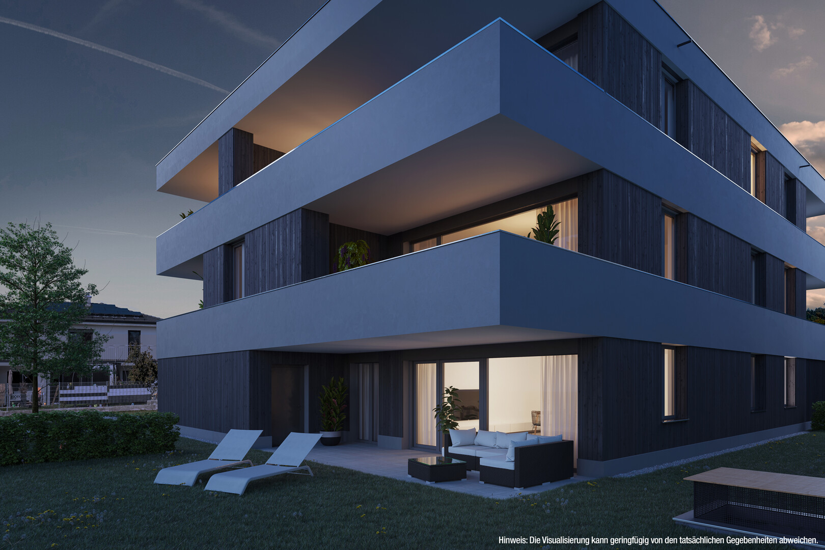 Elegantes Design und hochwertige Architektur umgesetzt von Architekt Clemens Huber versprechen ein zeitgemäßes Wohnen im Süden von Wolfurt.