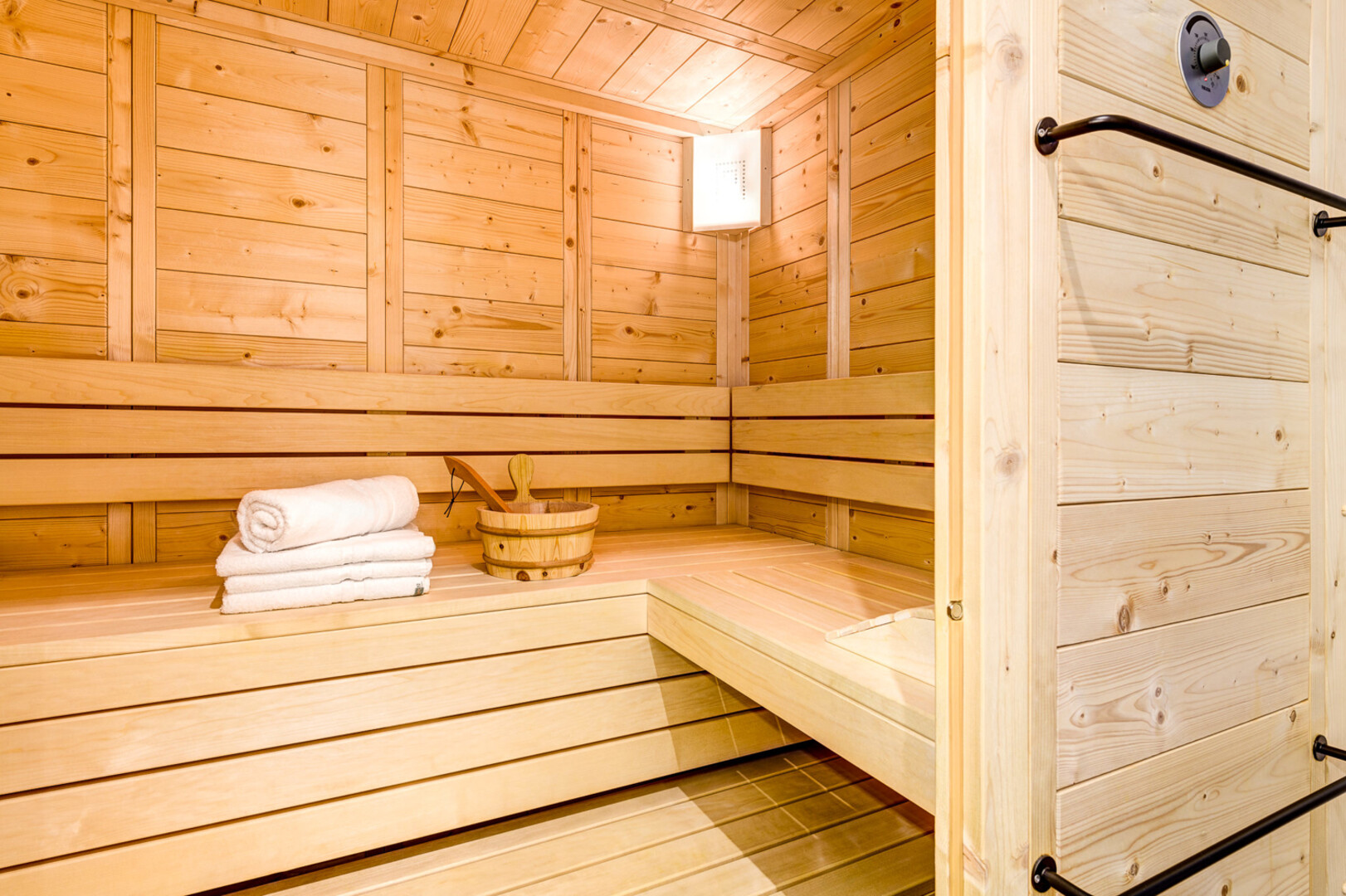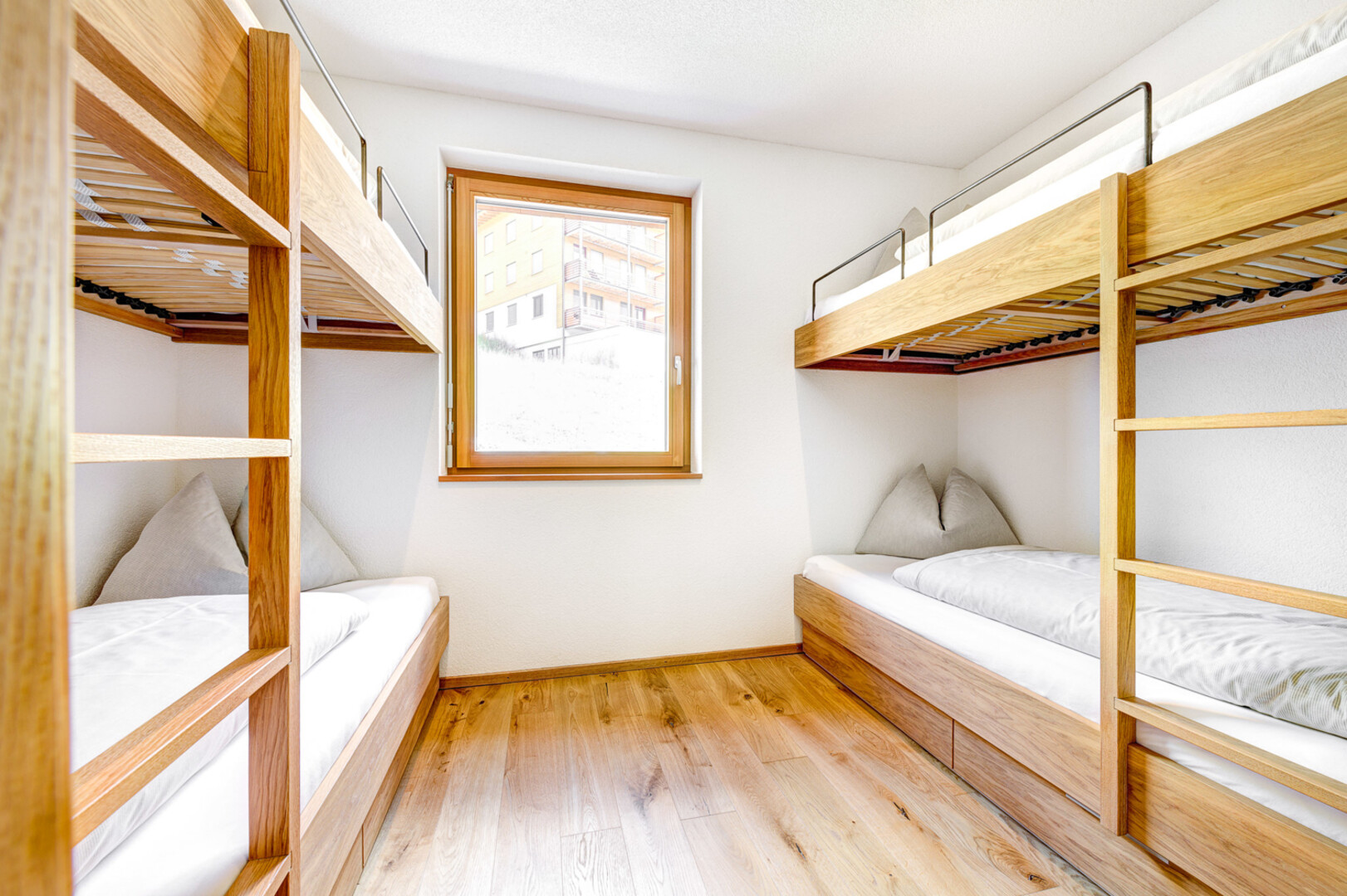 Das Appartement verfügt über drei Schlafzimmer, darunter zwei elegante Doppelzimmer und ein charmantes Zimmer mit zwei Stockbetten – ideal für Familien oder Gruppen bis zu 8 Personen. Zwei moderne Bäder mit Dusche und WC sorgen für Komfort und Privatsphäre. Ein Badezimmer wurde sogar mit einer exklusiven Sauna ausgestattet, um Ihnen entspannende Momente der Erholung zu bieten.