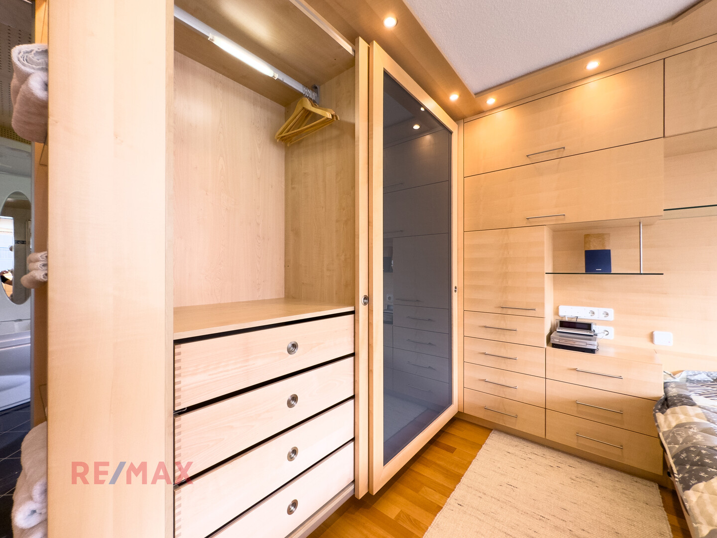 Die Wohnung besticht durch ihre lichtdurchfluteten Räume, hochwertige Materialien und edle Tischlermöbel aus Ahorn. Ein Wellness-Bad mit Jacuzzi, Dampfbad und separater Dusche lädt zum Entspannen ein. Die moderne Einbauküche mit Markengeräten und Bar lässt keine kulinarischen Wünsche offen. Im Schlafzimmer erwartet Sie ein Wasserbett und ein direkter Badezimmerzugang. Ein separates Büro bietet zusätzlichen Platz.