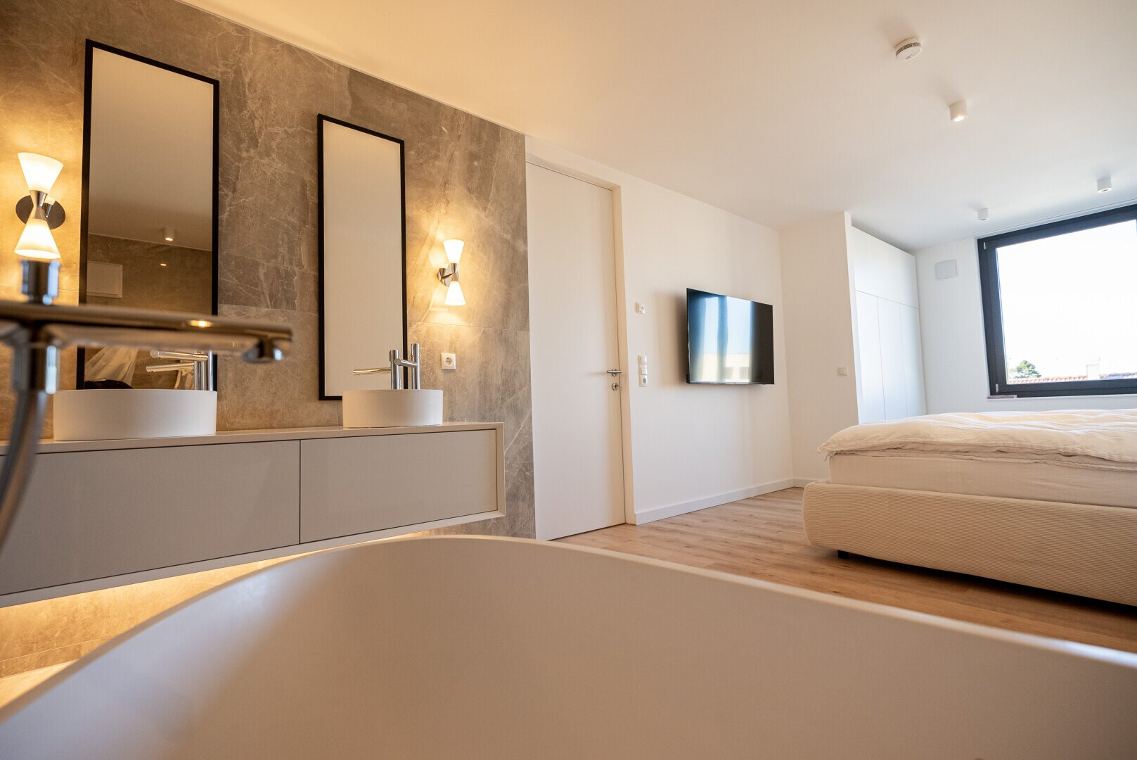 Das Highlight dieser Wohnung ist die großzügige Terrasse, die Ihnen einen atemberaubenden Blick auf die umliegende Landschaft bietet. Zwei Stellplätze in der Tiefgarage können um jeweils € 25.000,00 erworben werden.