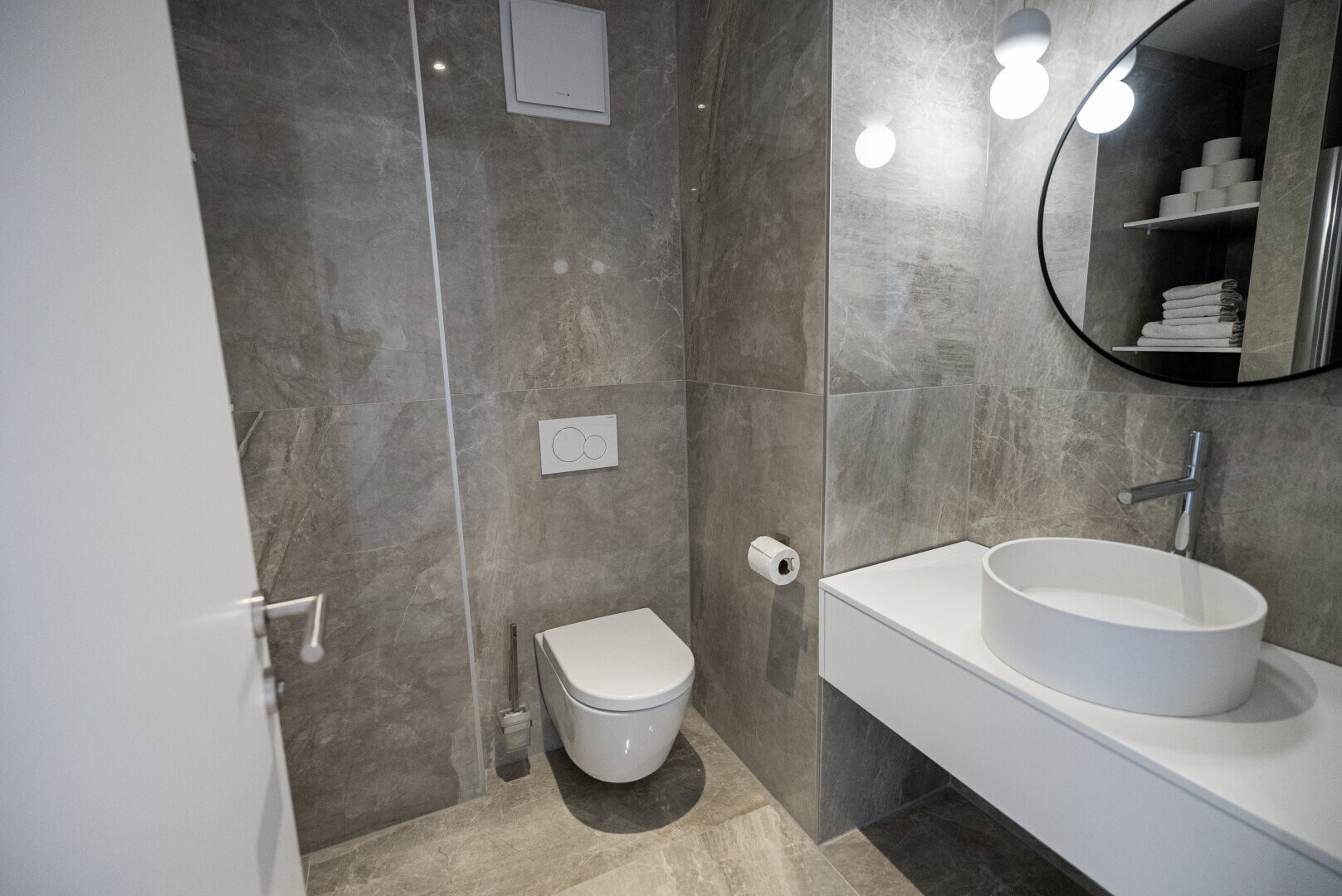 Die Immobilie verfügt über einen Personenaufzug, der Ihnen das lästige Treppensteigen erspart und einen bequemen Zugang zu Ihrer Wohnung ermöglicht. Das Badezimmer ist mit exklusiven Möbeln und italienischen Fließen ausgestattet und lässt keine Wünsche offen. Die Wohnung verfügt über ein weiteres Badezimmer für Kinder oder Gäste mit WC und Dusche. Die Beheizung erfolgt über umweltfreundliche Pellets, was nicht nur gut für die Umwelt ist, sondern auch Ihre Betriebskosten niedrig hält.