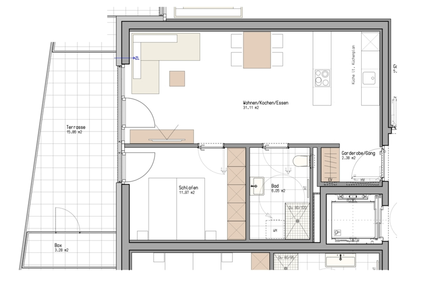 Wichtiger Hinweis - Auf dem Wohnunsgrundriss ist die Küche falsch eingezeichnet.