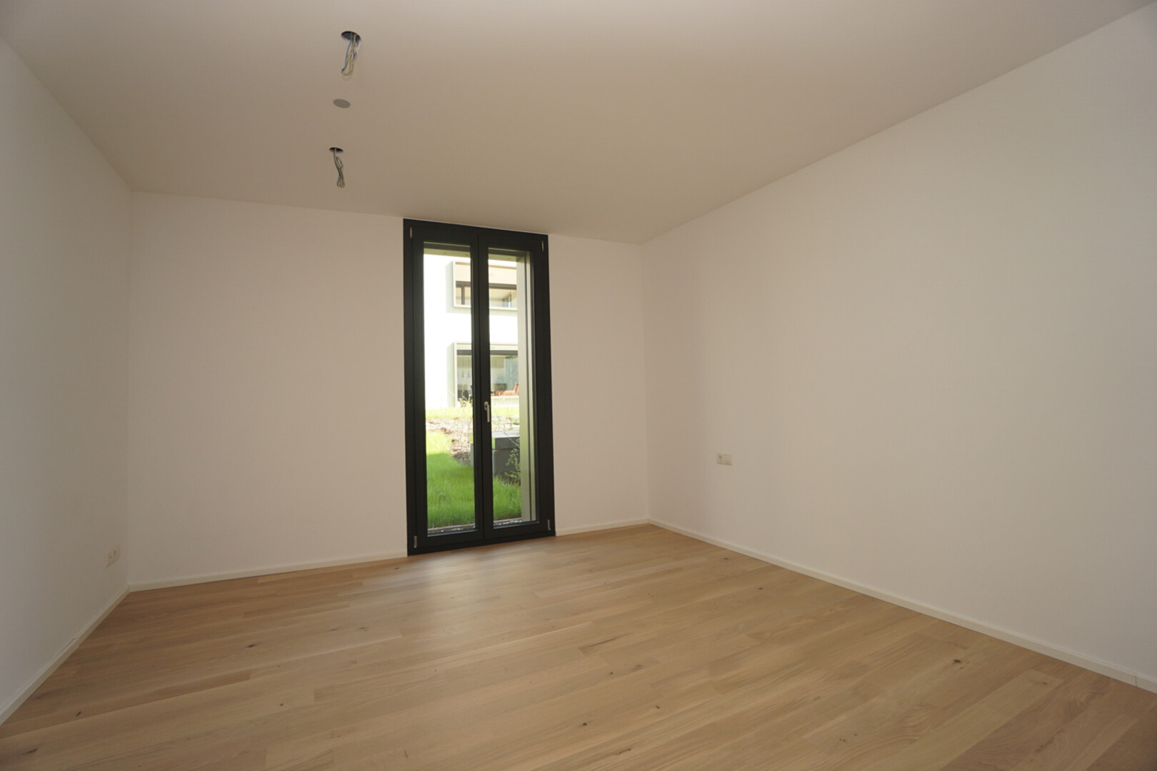 Die Wohnung überzeugt durch eine durchdachte Raumaufteilung und lichtdurchflutete Zimmer. Große Fensterfronten im Schlaf- und Wohnzimmer schaffen eine helle, einladende Atmosphäre. Der offene Wohnbereich ist ideal in Zonen für Kochen, Essen und Wohnen gegliedert. Eine hochwertige Einbauküche der Firma Weiler Möbel fügt sich stilvoll in den Raum ein.