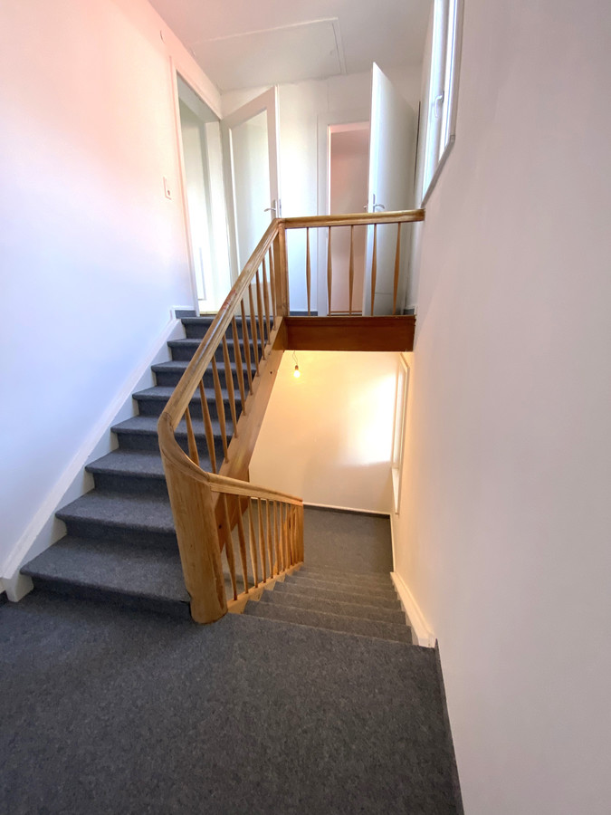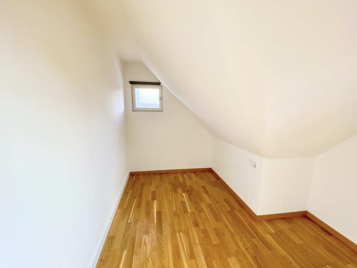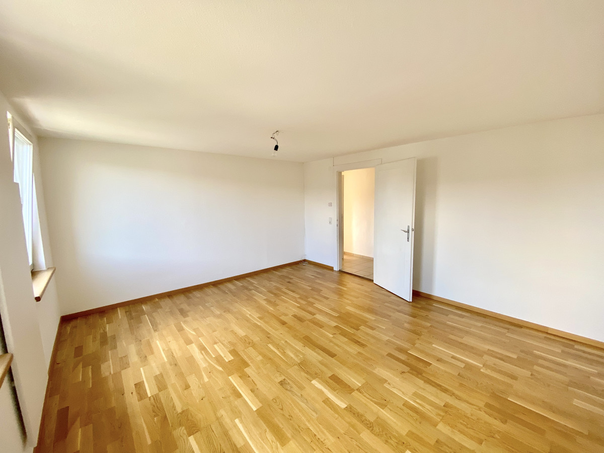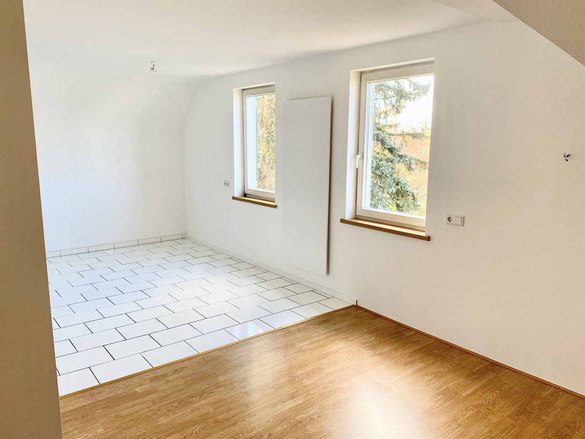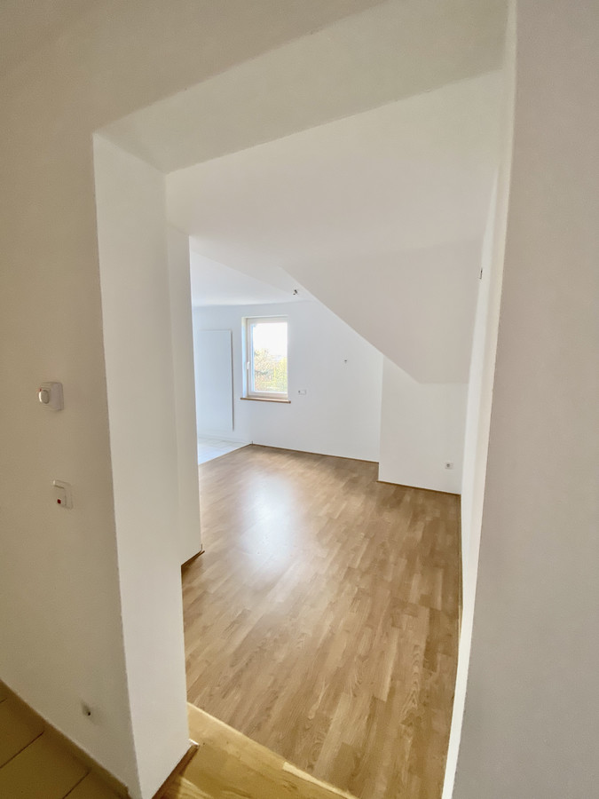 Die frisch renovierte Wohnung befindet sich im Obergeschoß des Zweiparteienhauses, Im Kaisermann 8.