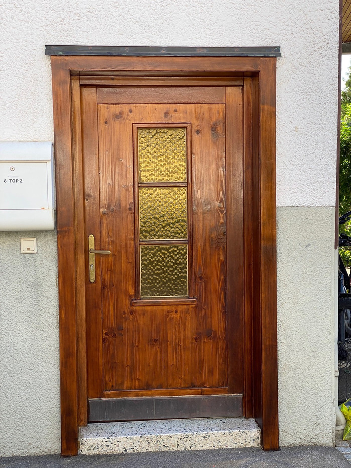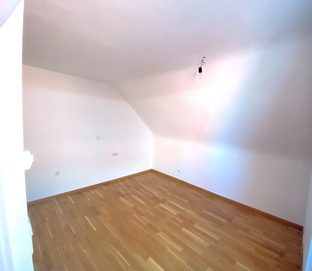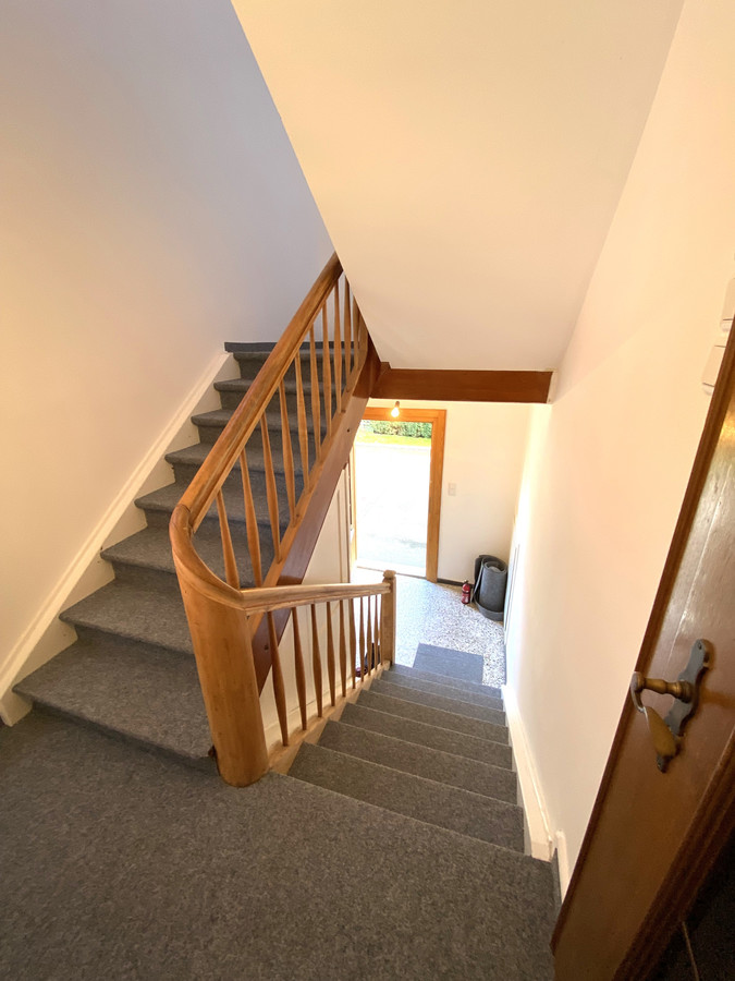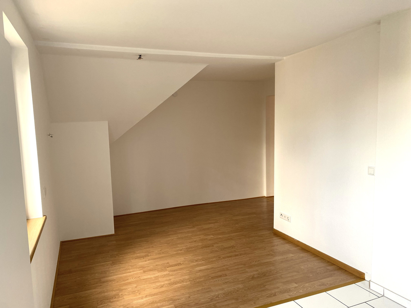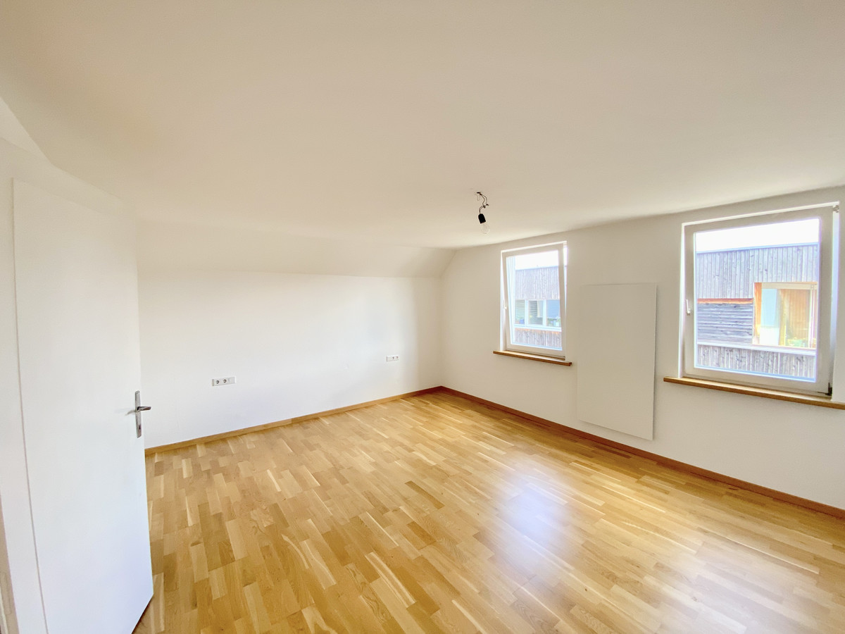 Die frisch renovierte Wohnung befindet sich im Obergeschoß des Zweiparteienhauses, Im Kaisermann 8.