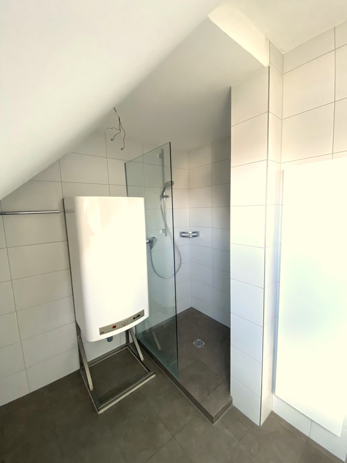 Bad mit Waschbecken, Dusche, WC, Boiler und Waschmaschinenanschluss