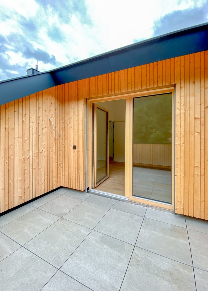 Hebe- Schiebe Tür & Verglasung nach Westen bis zum Dach