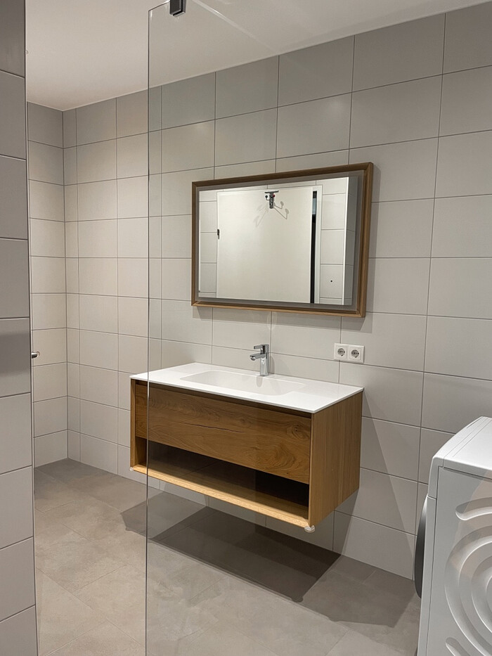 Bad mit Möbel-Waschtisch und dimmbarer Spiegelbeleuchtung