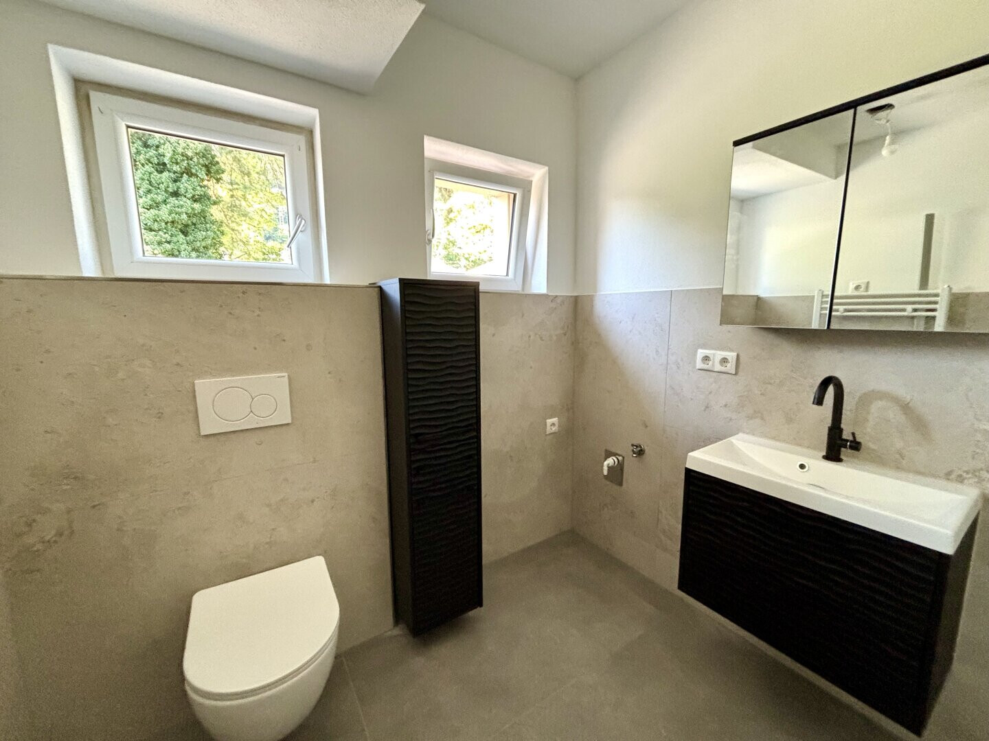 Das Herzstück der Wohnung ist die neue Einbauküche, die nicht nur funktional, sondern auch einladend ist. Das Badezimmer ist mit einer praktischen Dusche ausgestattet und ein separates WC sorgt für zusätzlichen Komfort.