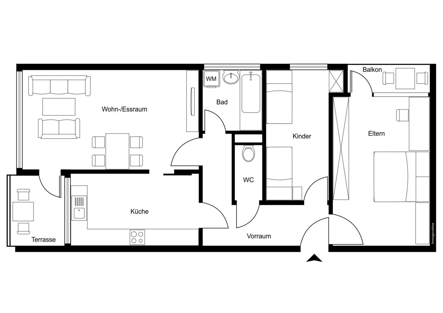 Die gut geschnittene Wohnung bietet drei helle Zimmer, die vielseitig als Wohn-, Schlaf-, Kinder- oder Arbeitszimmer genutzt werden können. Große Fenster sorgen für eine freundliche und lichtdurchflutete Atmosphäre. Der durchdachte Grundriss ermöglicht ein angenehmes Wohngefühl und eine optimale Nutzung der Wohnfläche.