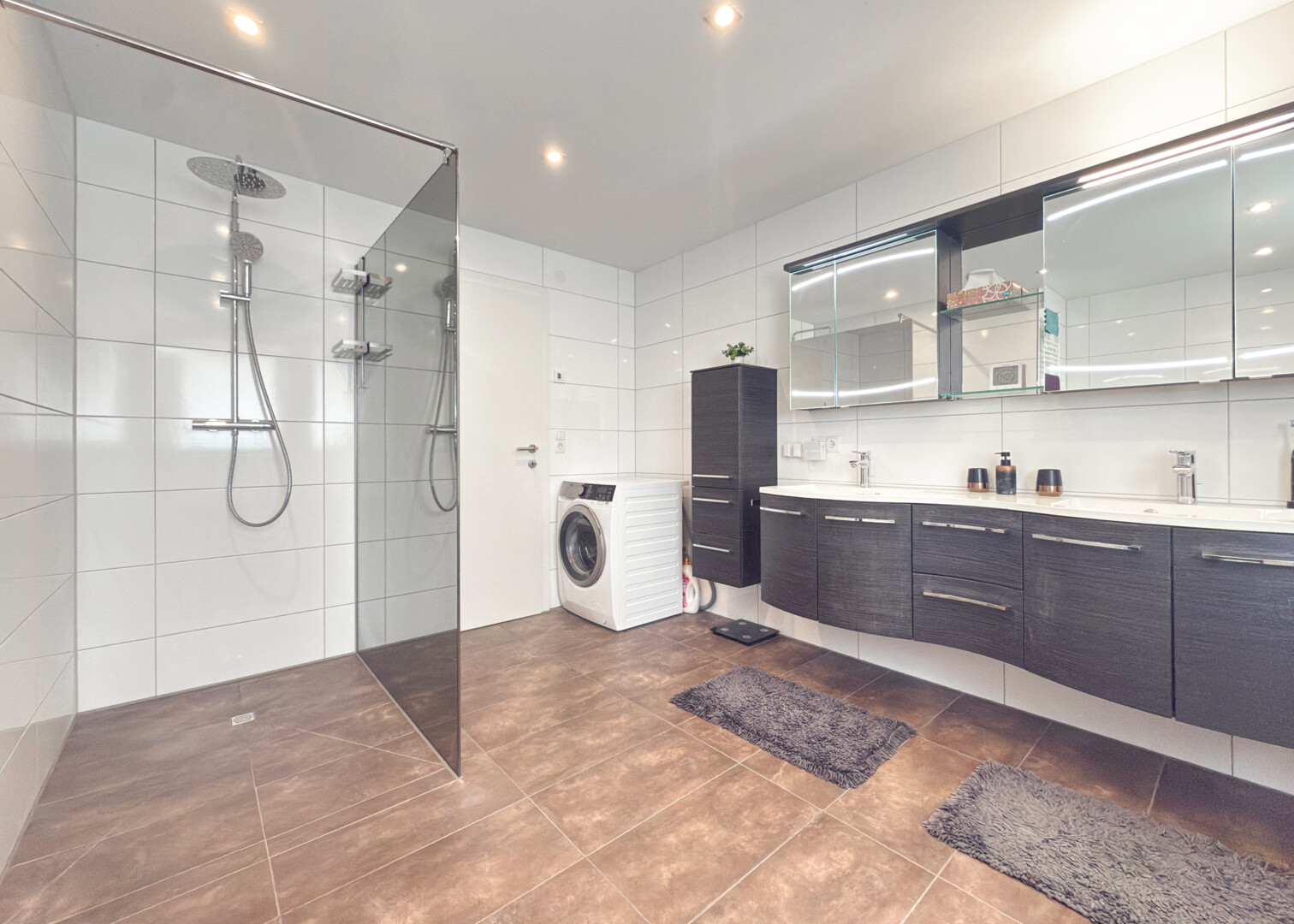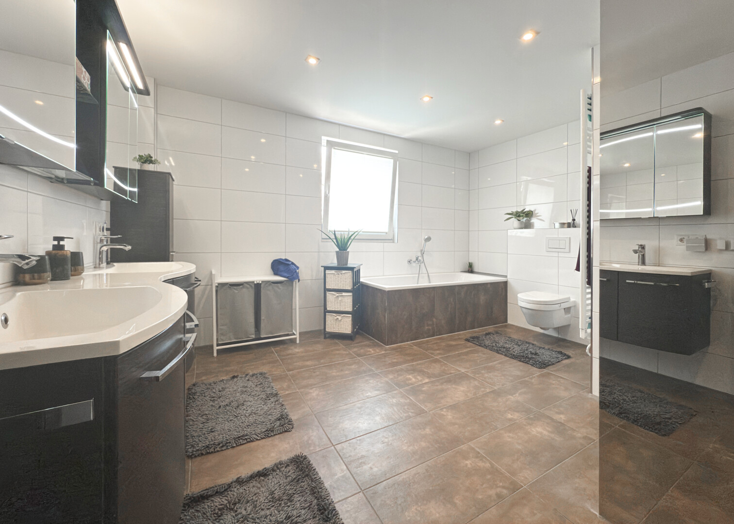 — vollausgestattetes Badezimmer mit Wanne, Dusche, WC und Fenster